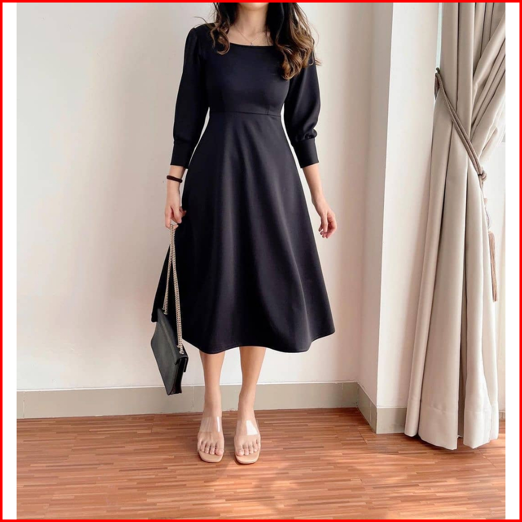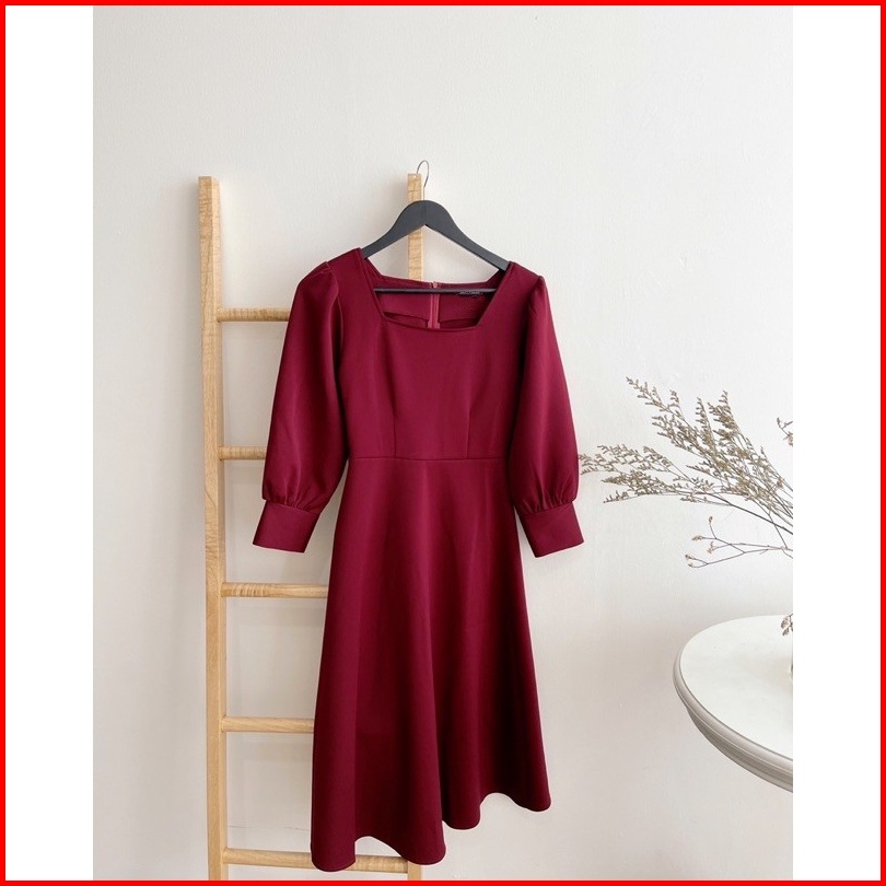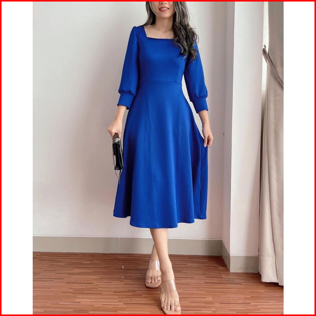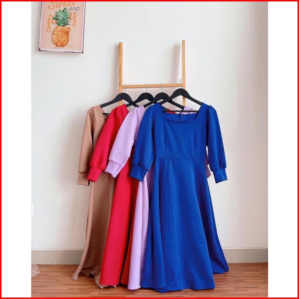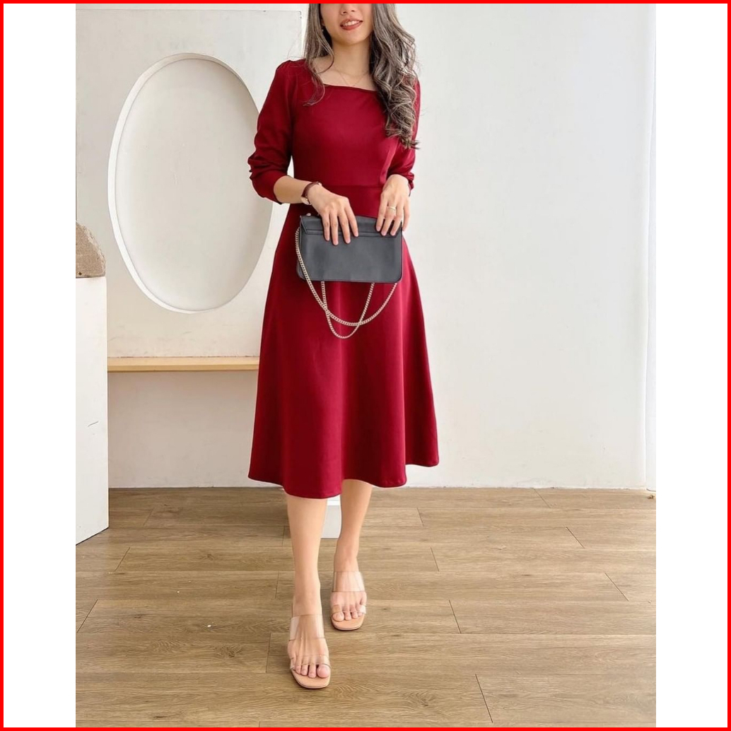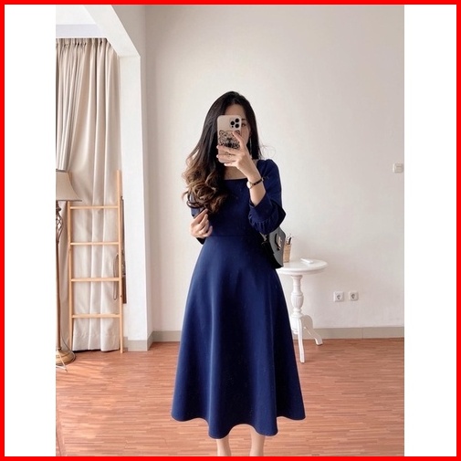 Aurora Midi Dress Korea Dress Pesta Viral Kekinian Dress Bahan Scuba Premium Size S M L Xl
