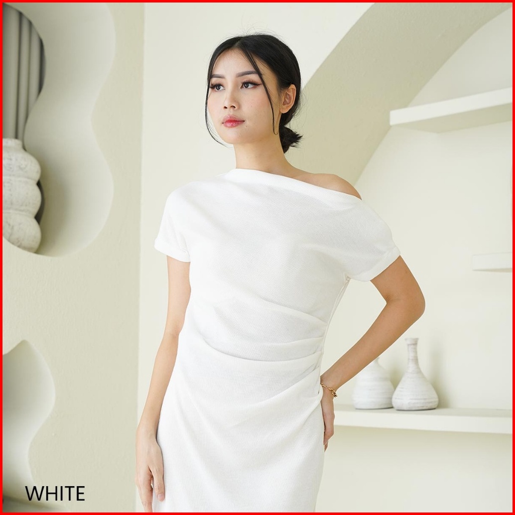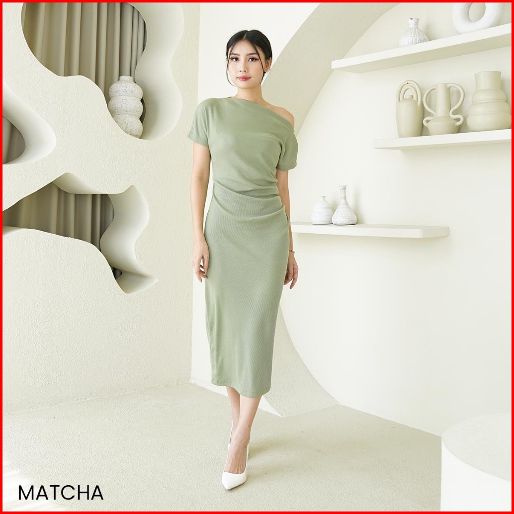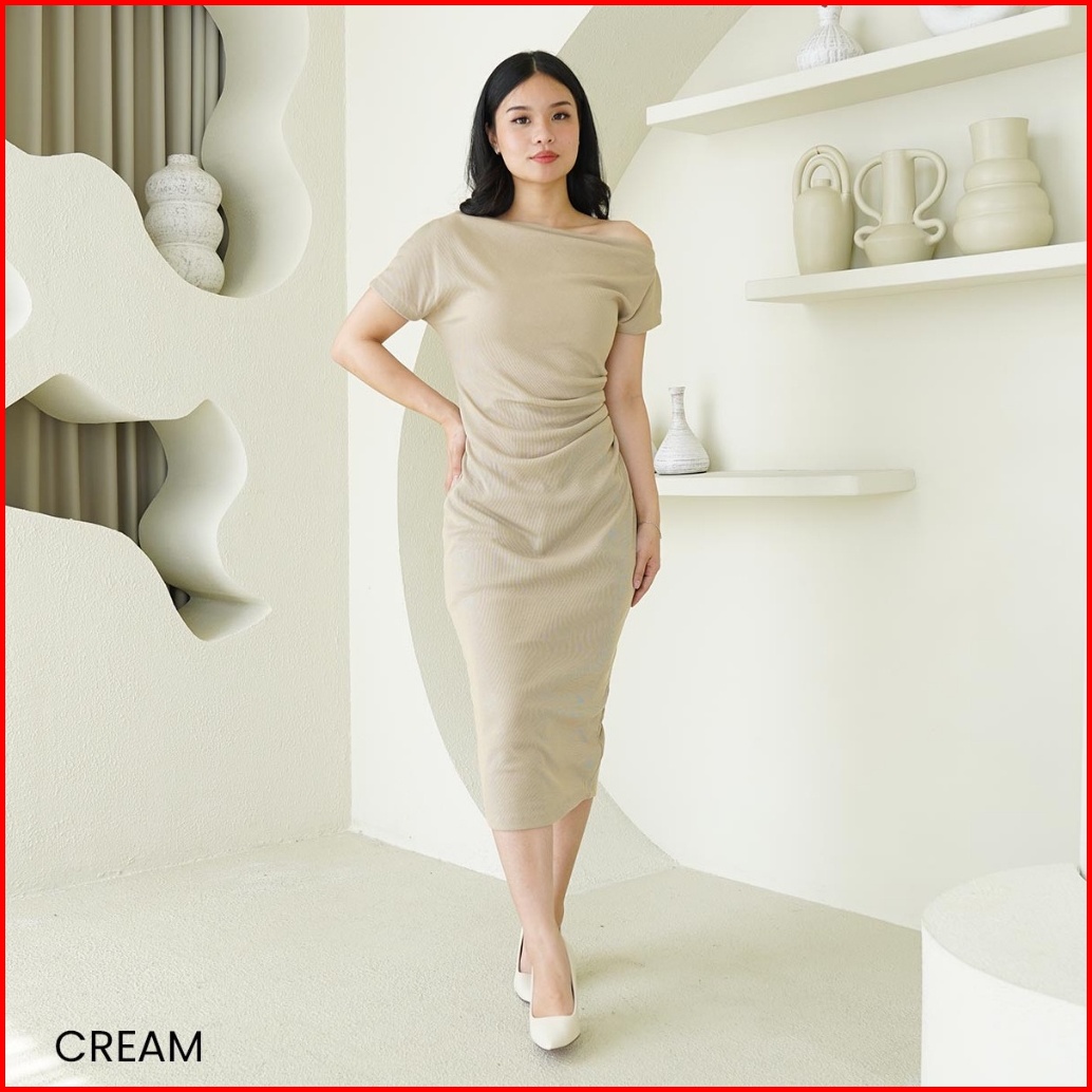 Dres Wanita Asymetric Collar Bodycone Dress Lorence