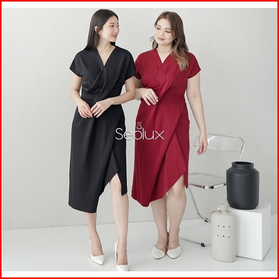 Seola - Ds1515 - Dress Pesta Wanita Midi Flare Basic Scuba Dress Kantor Wanita Modern Murah