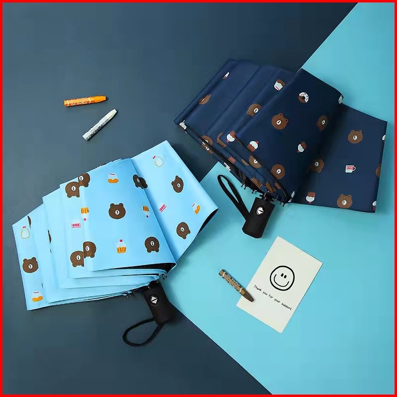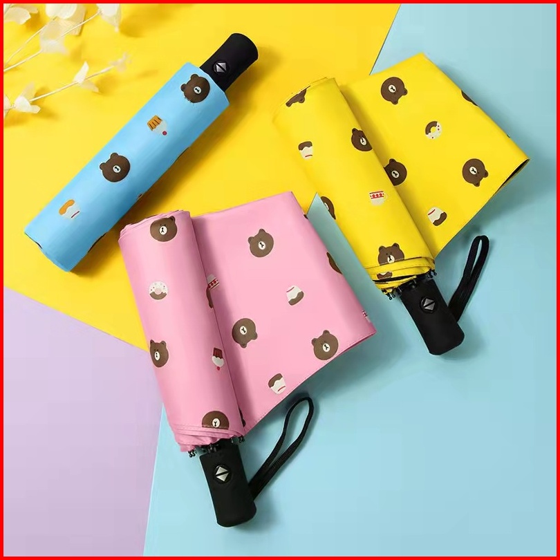 519 Payung Otomatis Open Close Lipat 3 Motif Brown Cake Anti Uv Kualitas Premium