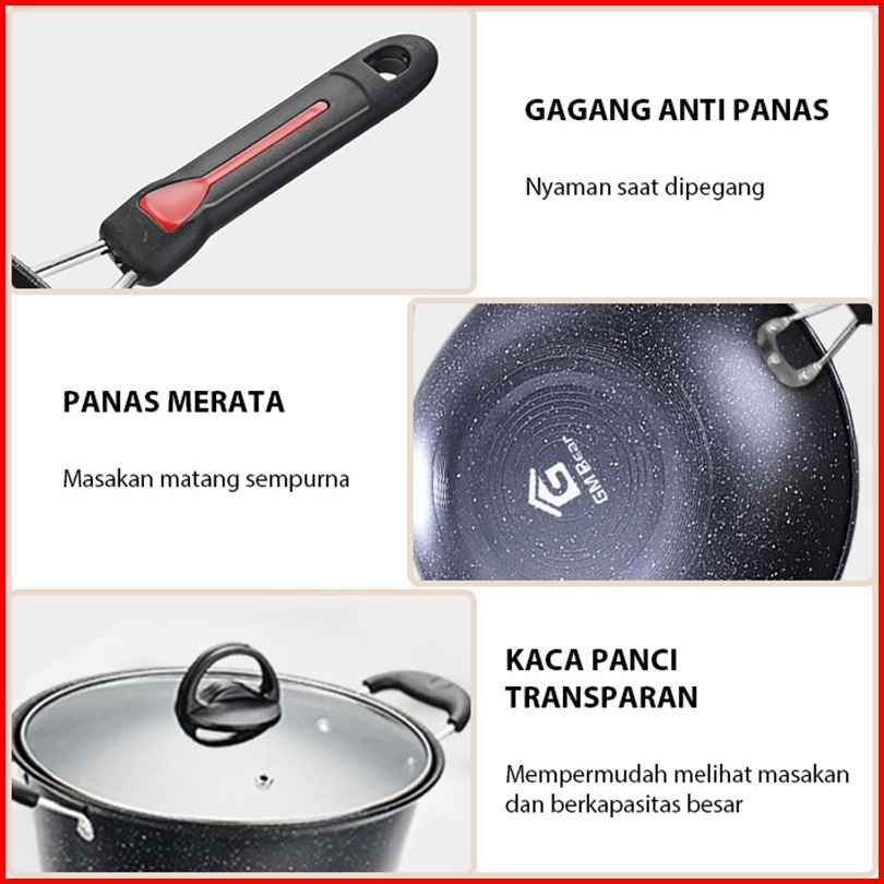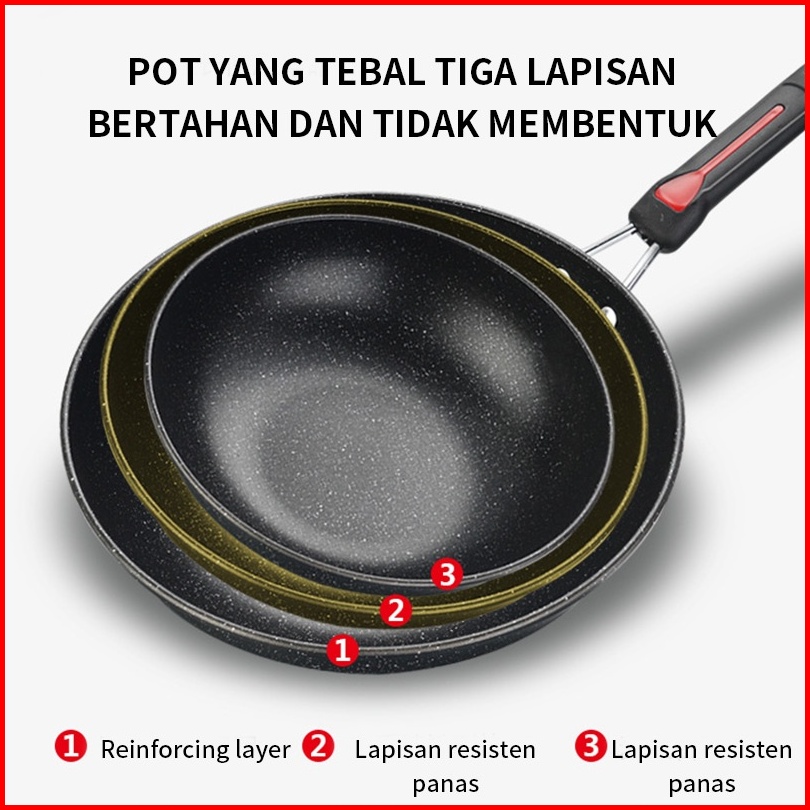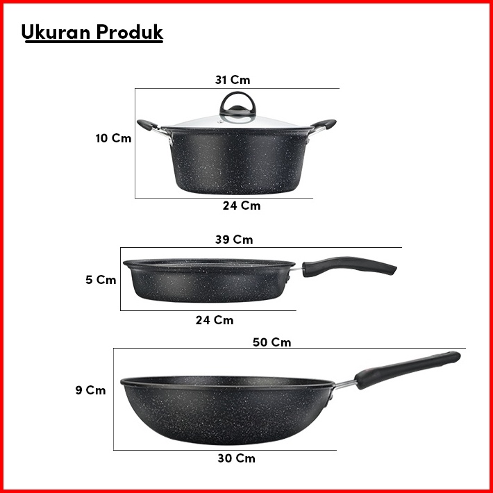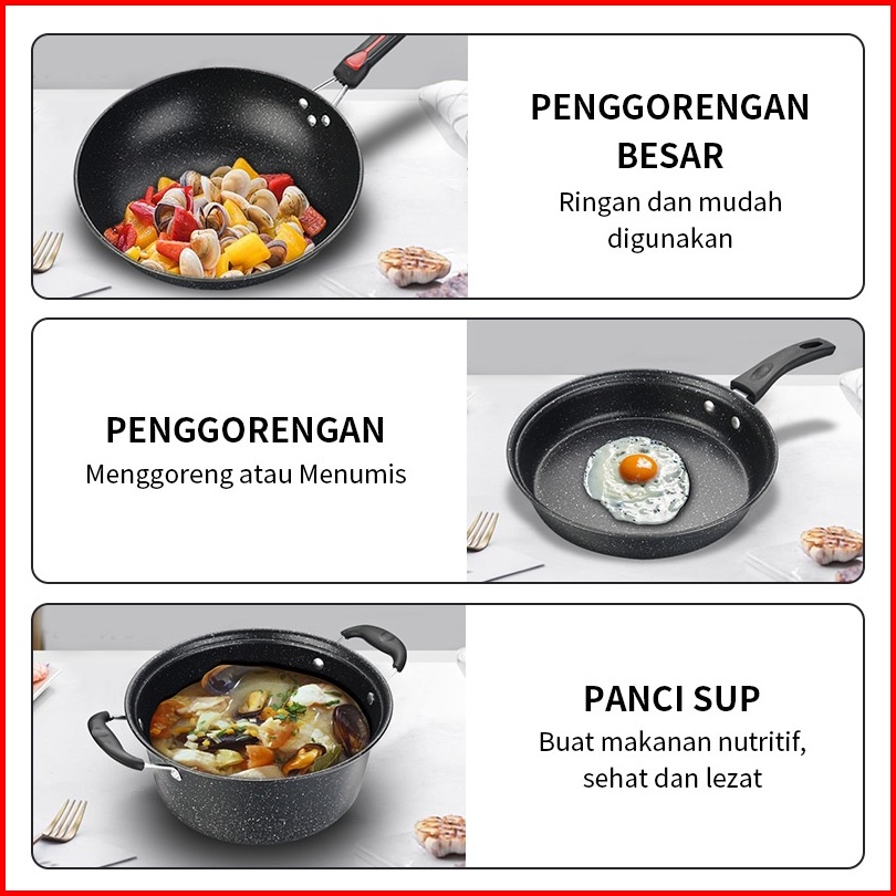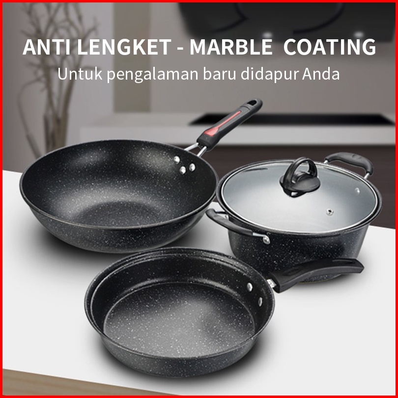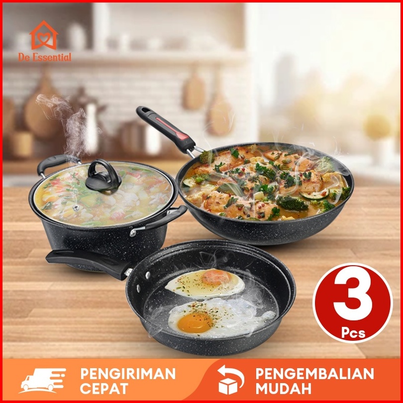 De Essential Panci Penggorengan Fry Pan Set 3 Pcs Marble Coating 1382 - Blaze Wajan Set