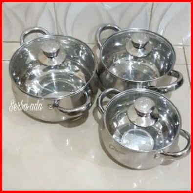 Panci Set Calypso Stainless Steel Isi 3 Set Tutup Kaca