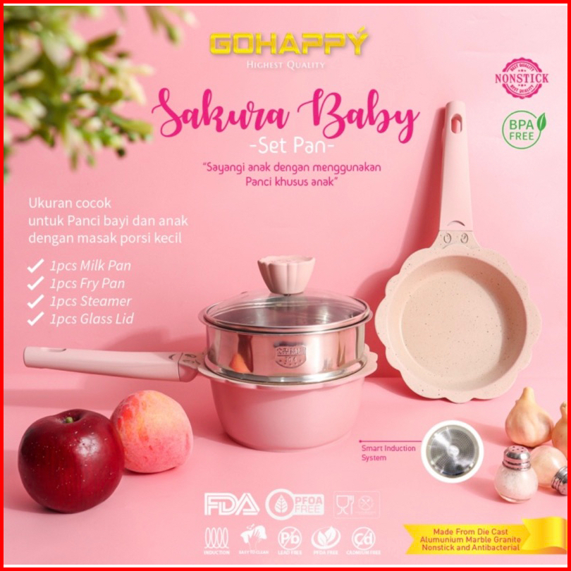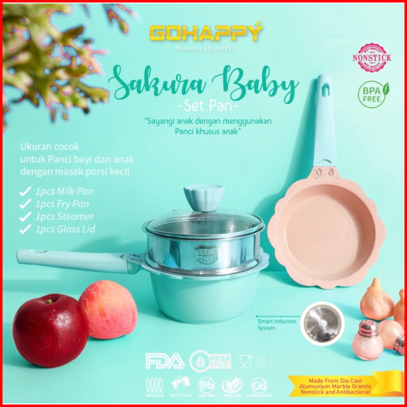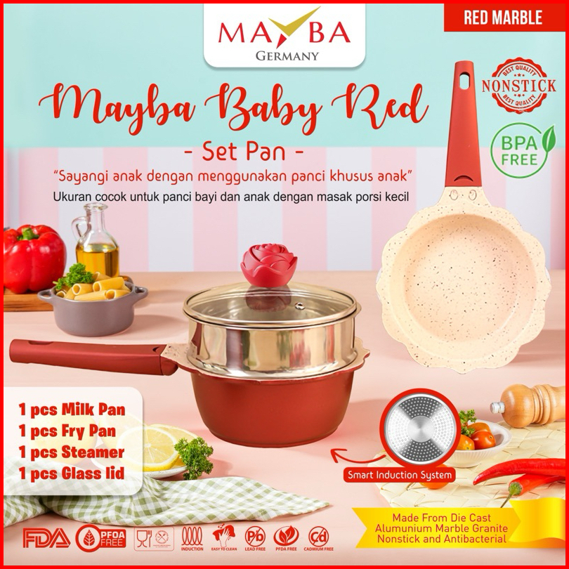 Mayba Set Panci Mpasi Baby Set Pan 4pcs Black Cream Lavender Red Go Happy Panci Mpasi Pink Blue