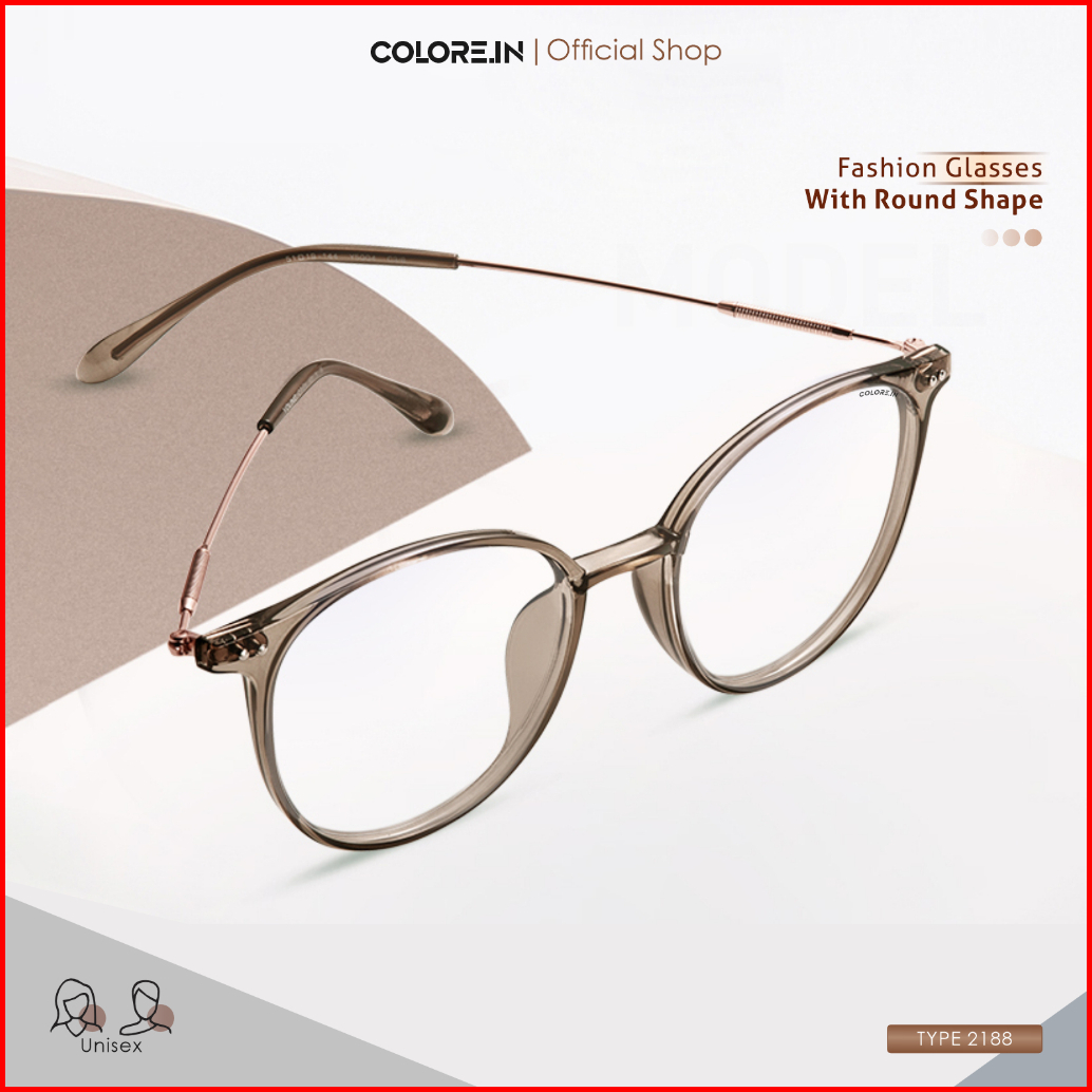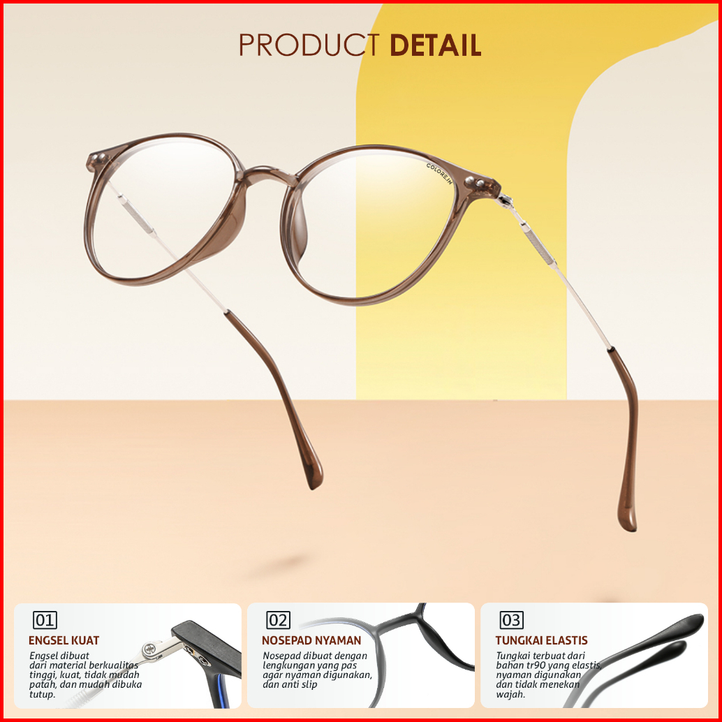 Colore.in Kacamata Photocromic Minus Anti Blueray Radiasi Wanita Pria 2 In 1 Bluecromic Anti Silau Bulat Metal Tr-90 Fra