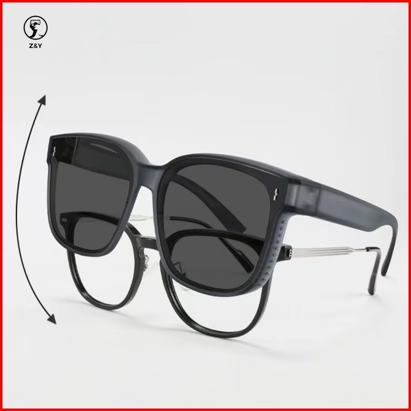 Z Y Kacamata Hitam 007 Sunglasses Clip On Lensa Polarized Style Fashion Wanita Dan Pria Simple Oversized Bentuk Kotak Be