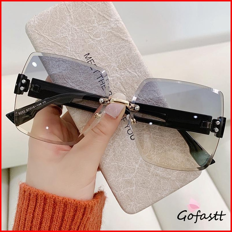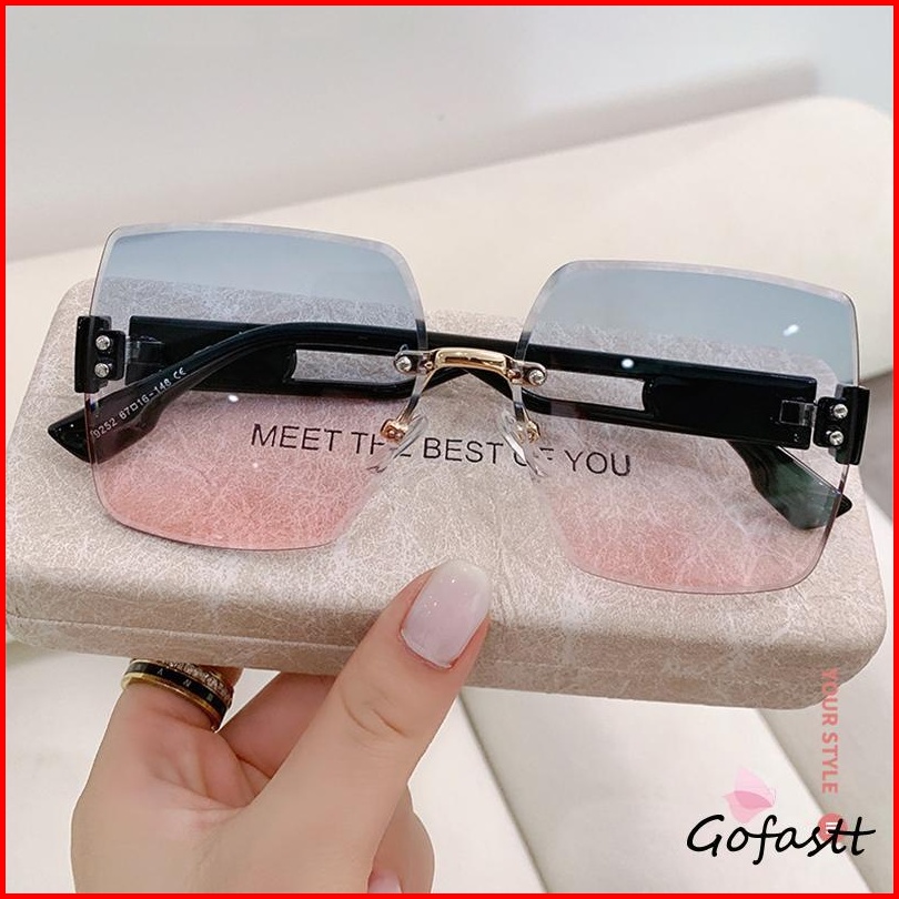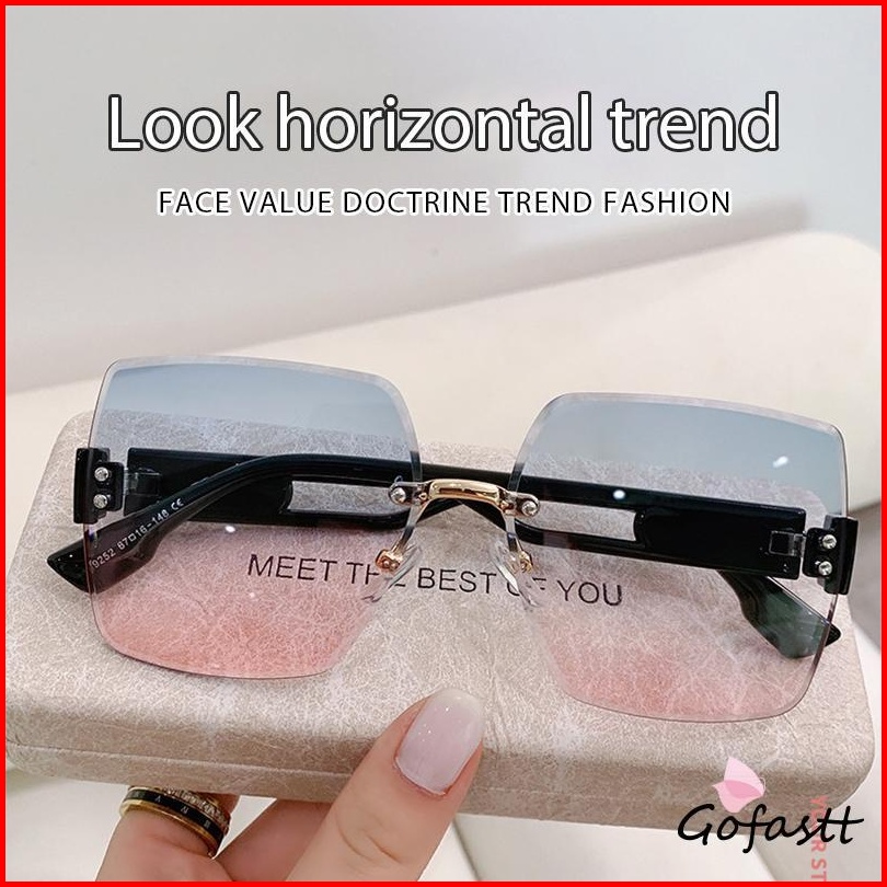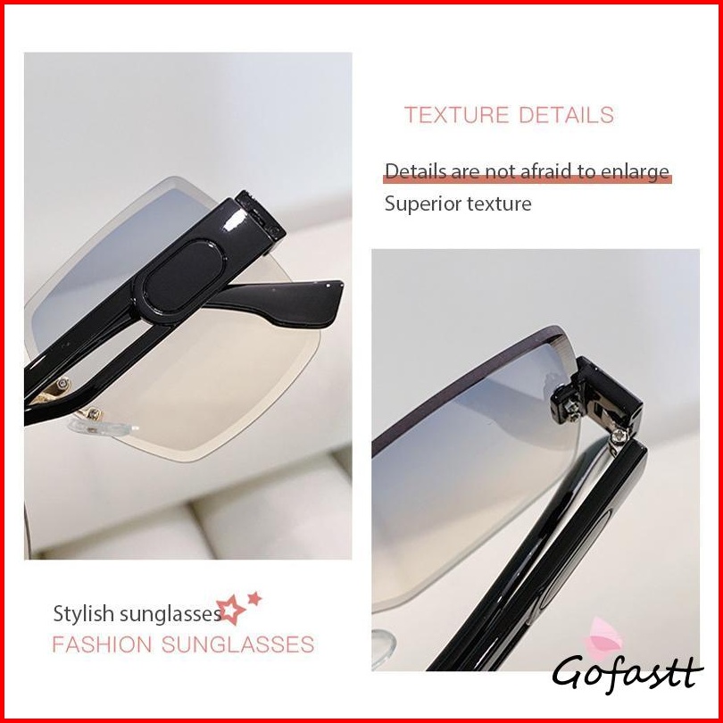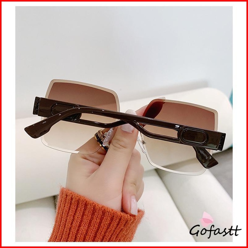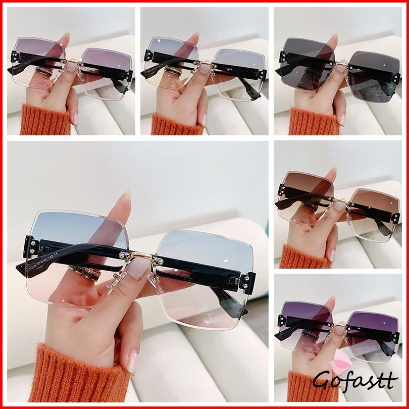 Kacamata Hitam Uv400 Tanpa Bingkai Bentuk Persegi Warna Gradasi Gaya Korea Untuk Wanita G