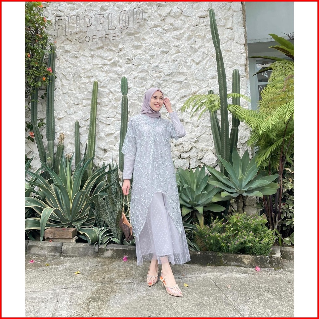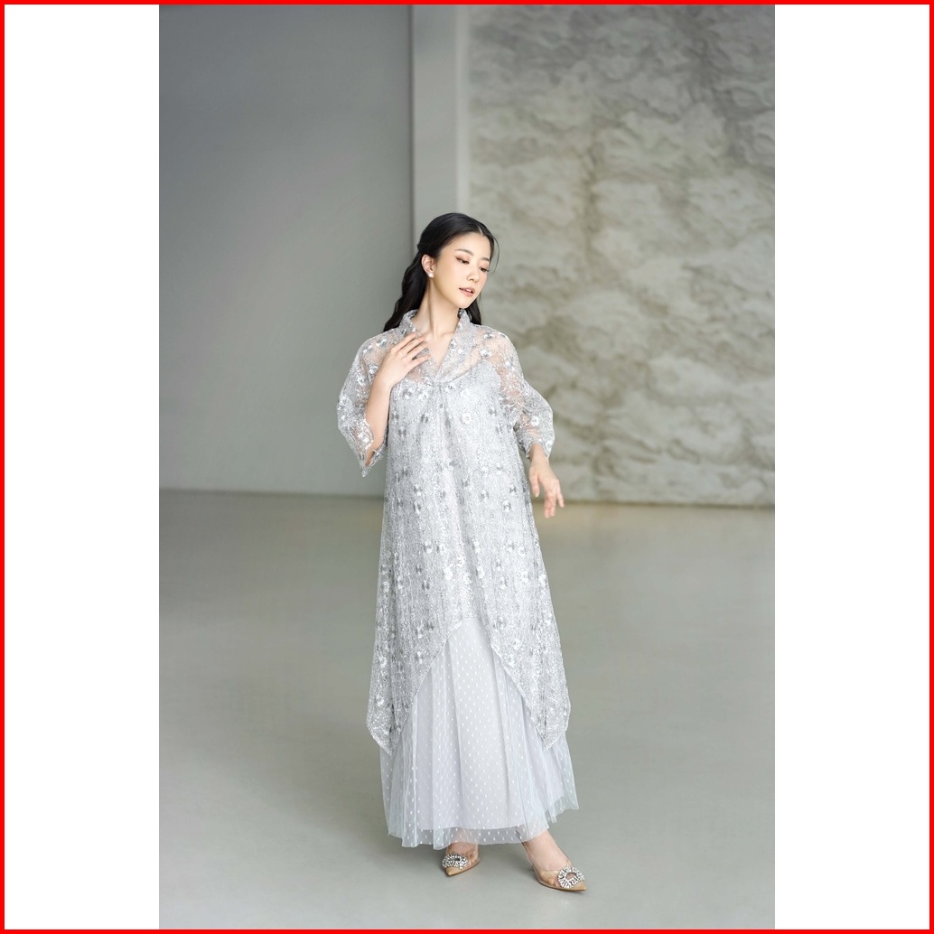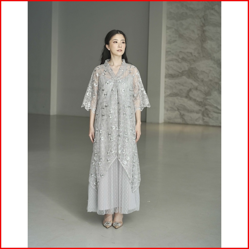 Aura Label - Vienna Dress Grey Mewah Chantily Brocade