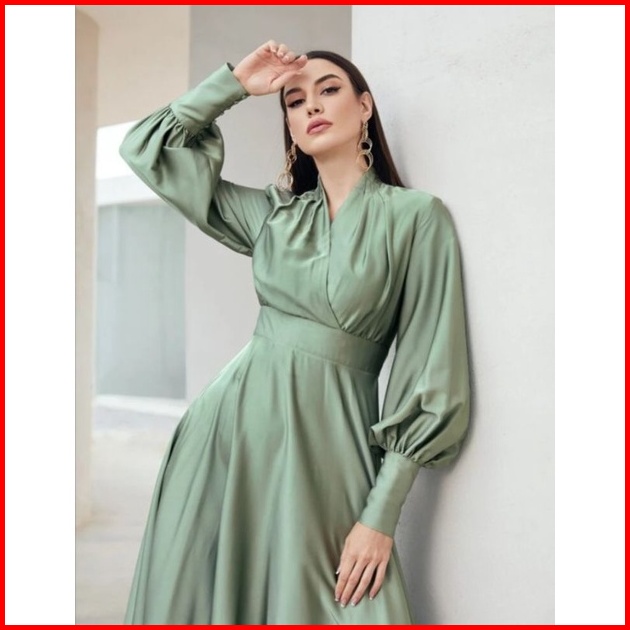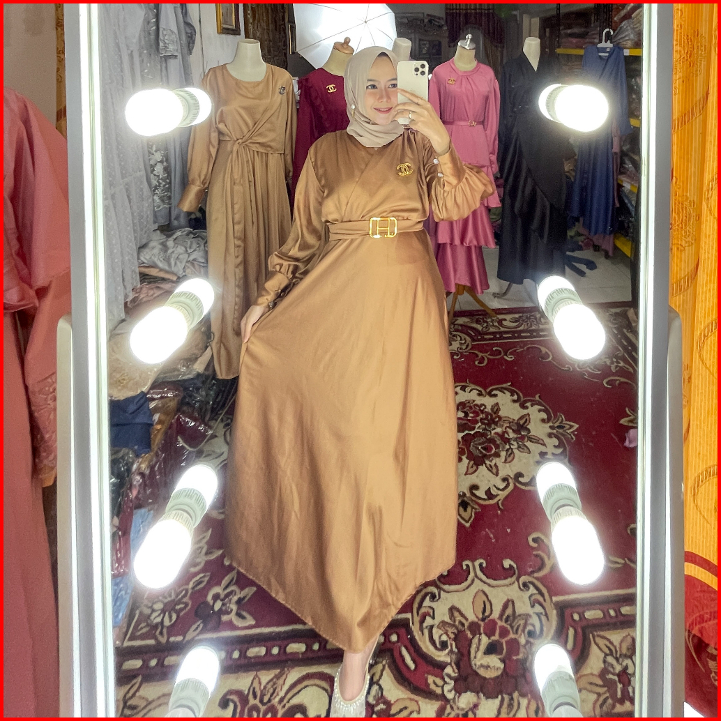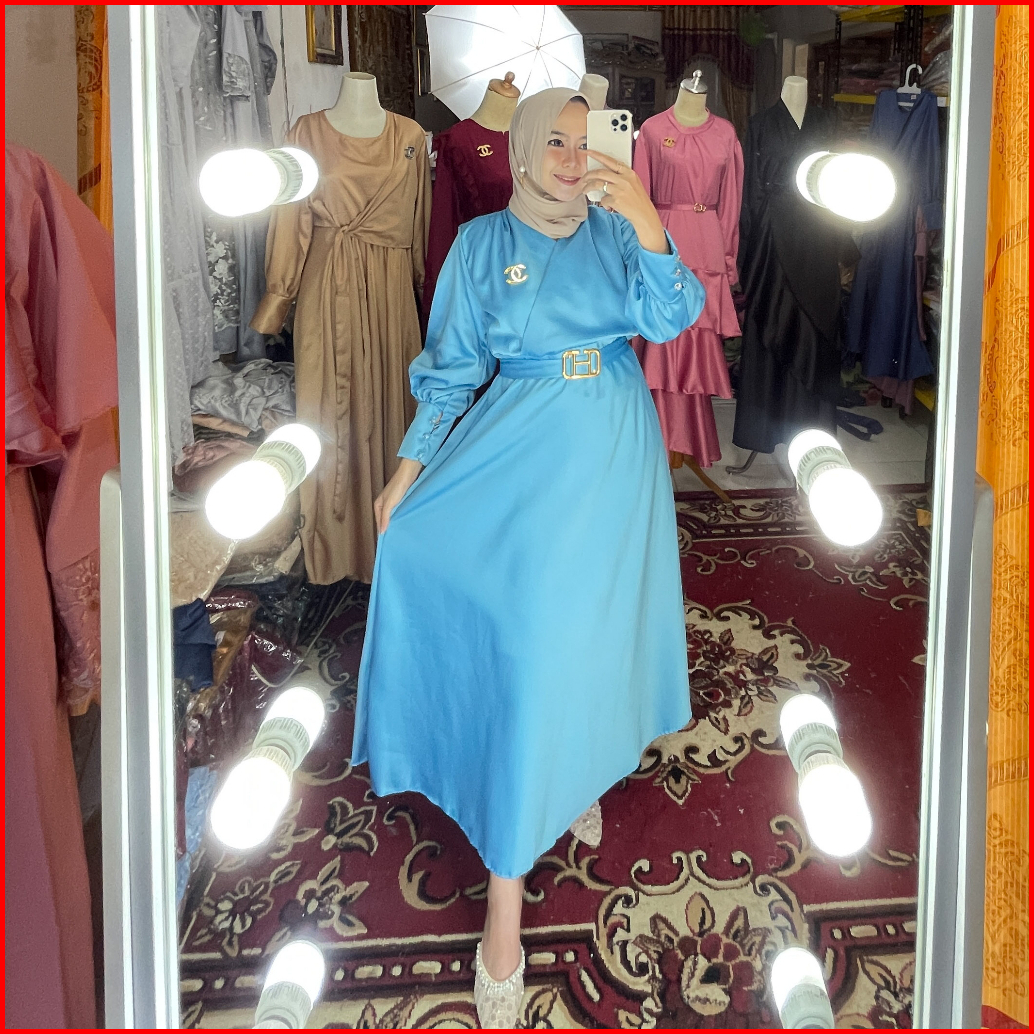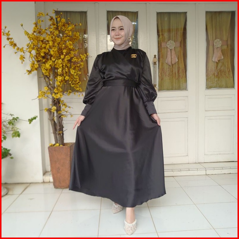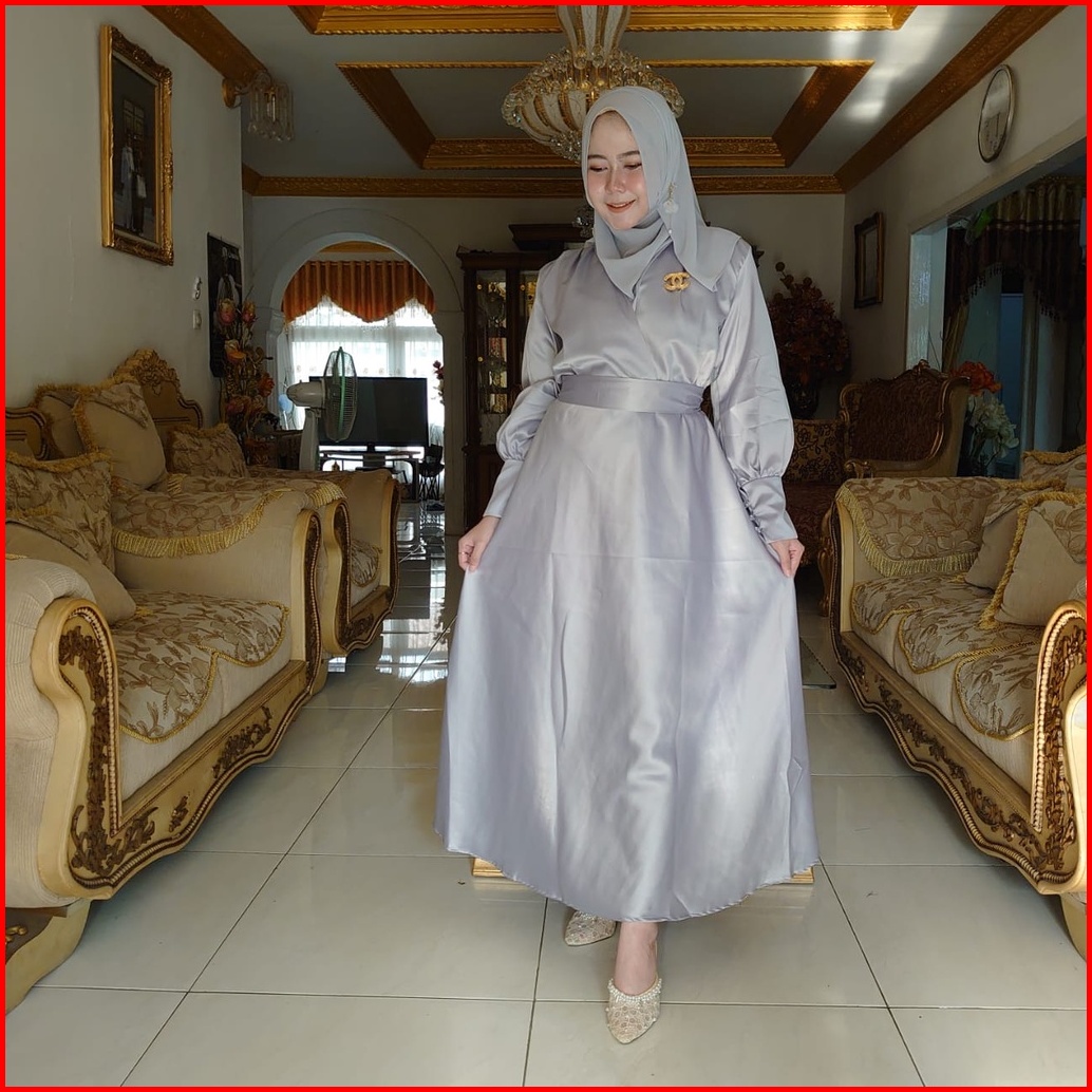 Gamis Pesta Muslimah Elegan Bahan Satin Lembut Adem Sheril Dress