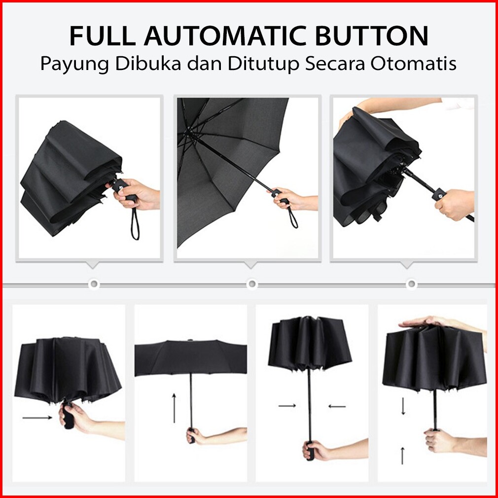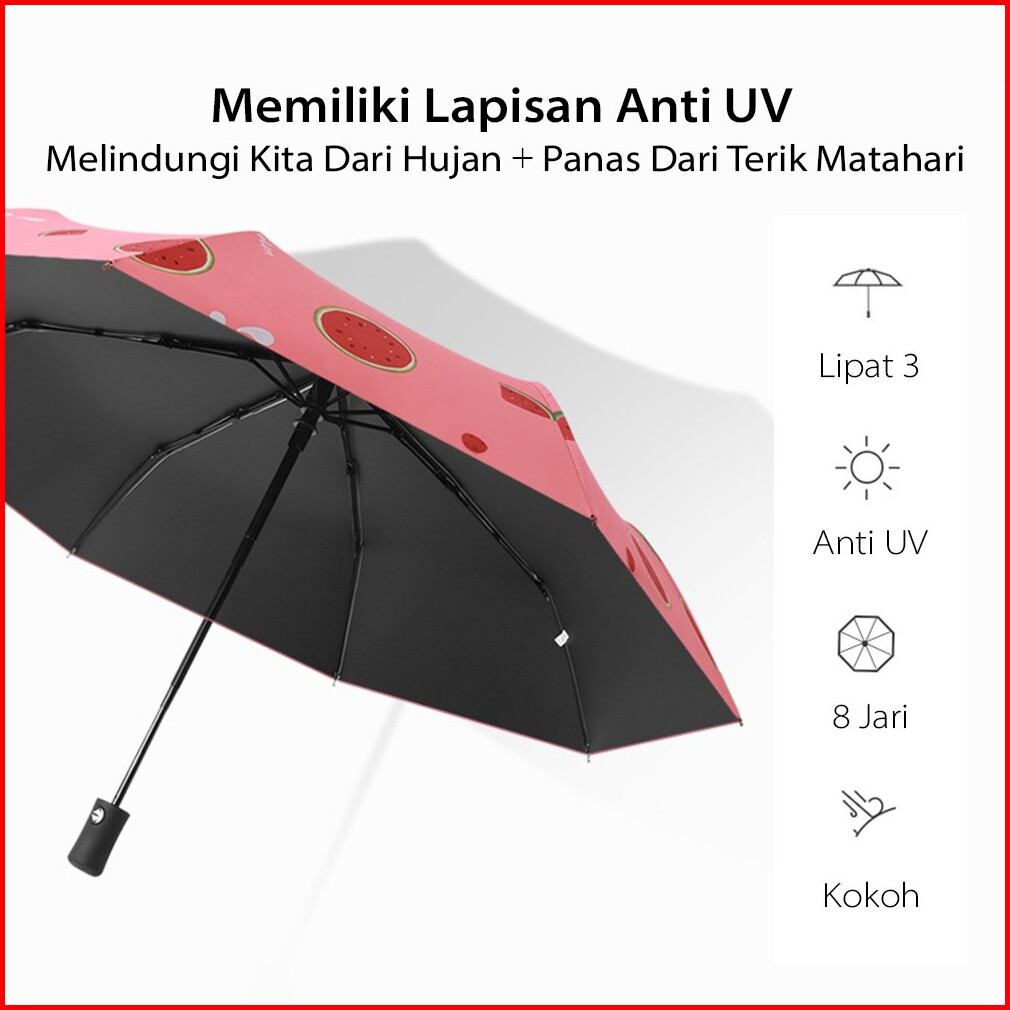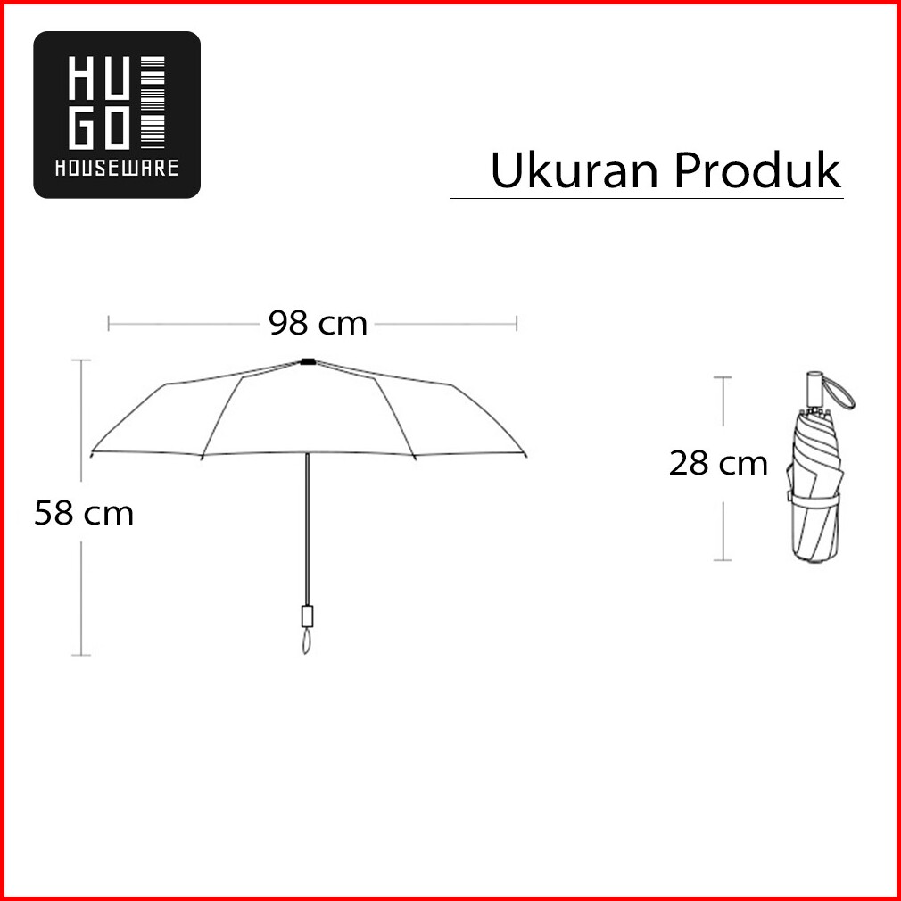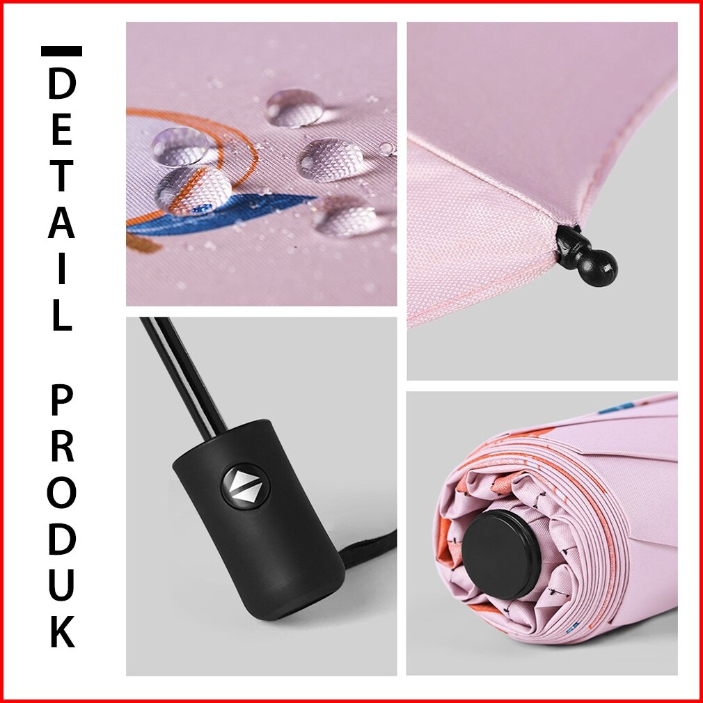 Payung Lipat Otomatis Buah Lipat Tiga Anti Uv Fiber Premium Quality Hugo