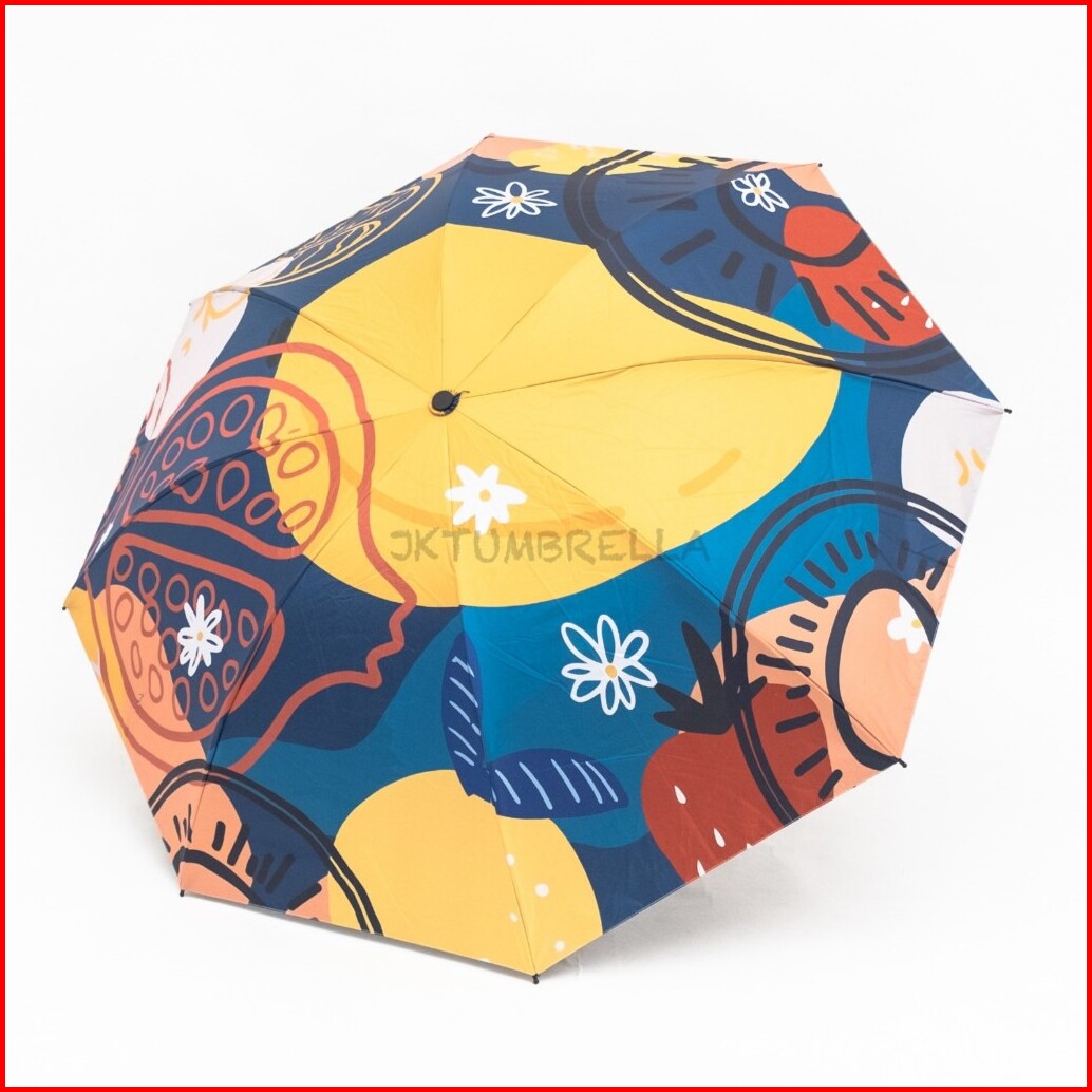 Payung Lipat 3 Sunflower Lapis Hitam Anti Uv Motif Bunga Abstrak Grc - Kode 8958 3042