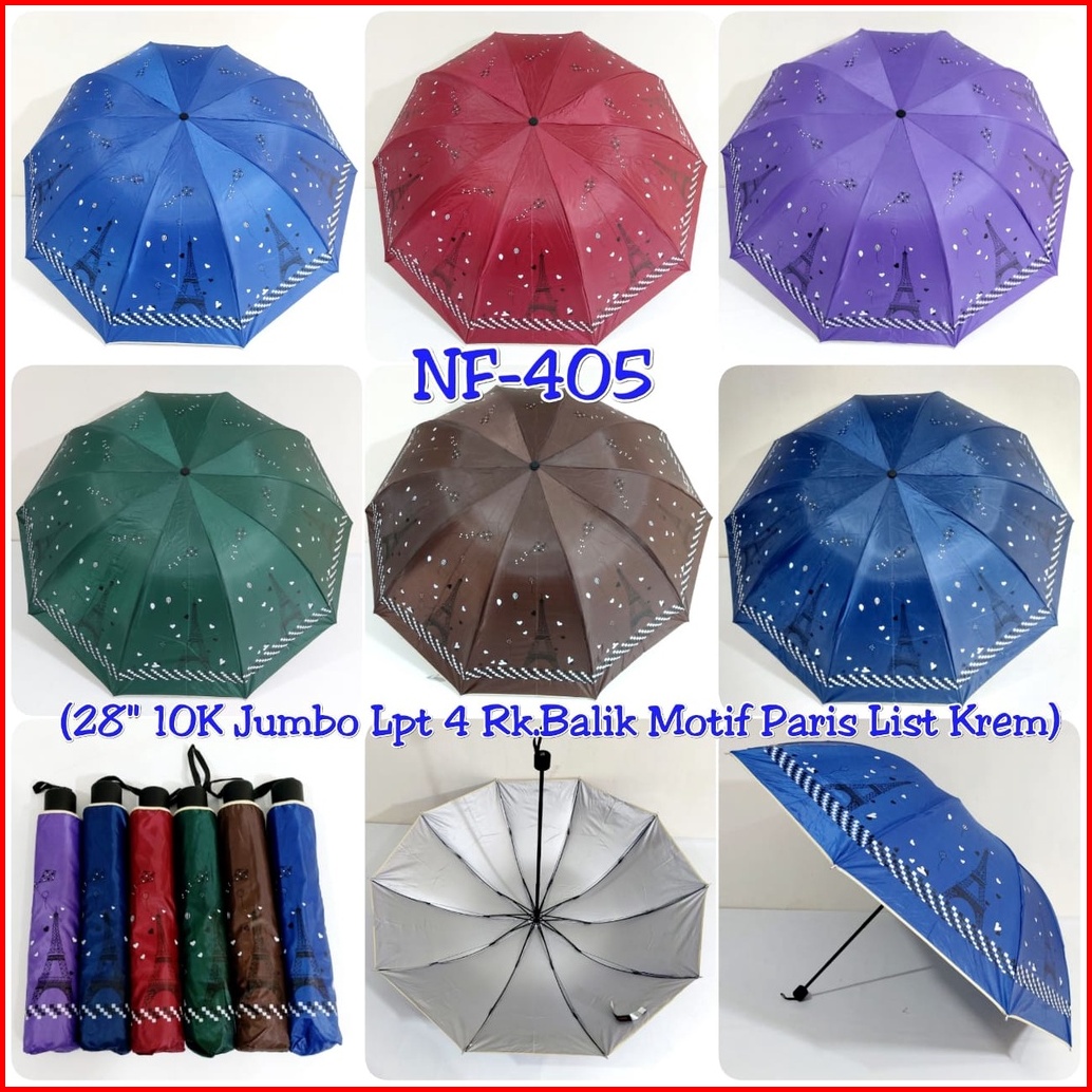 Payung Lipat 3 10 Jari Jumbo Paris Nf405 Pongee Anti Angin