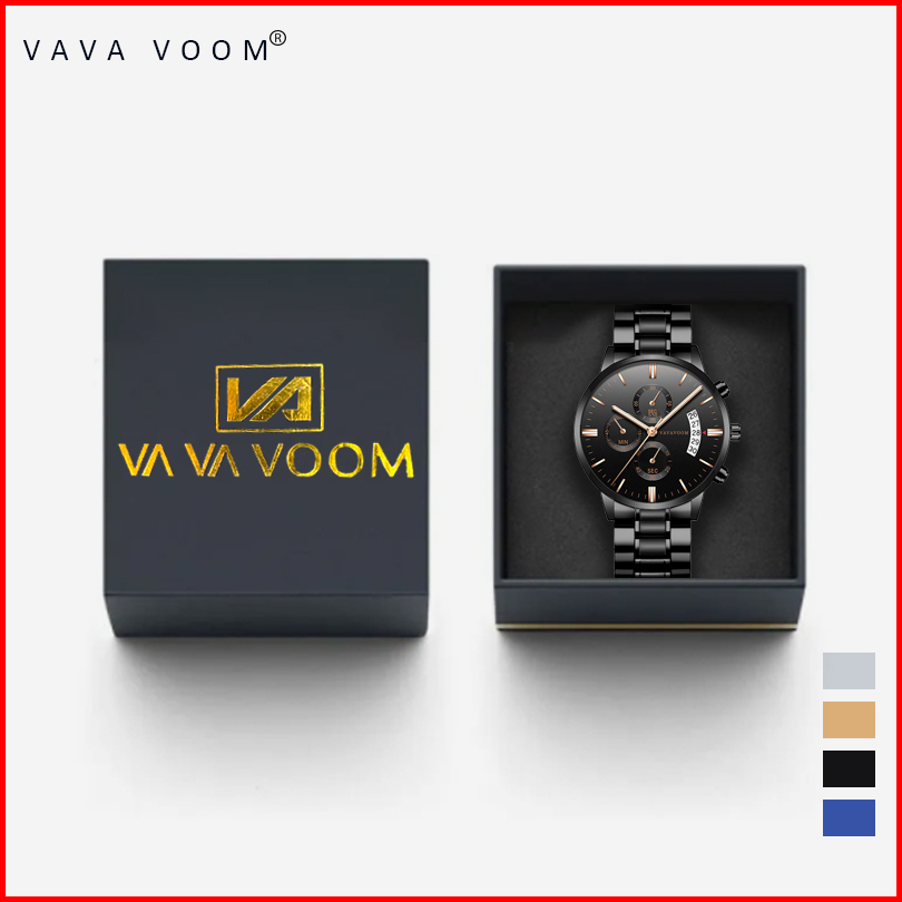 Va Va Voom 214 Jam Tangan Pria Business Stainless Steel Analog Quartz Original Tahan Air Watch Kotak Gratis