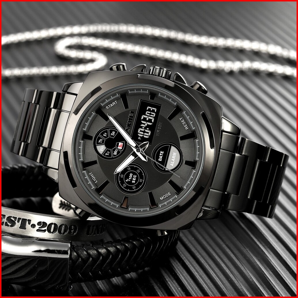 Skmei 1673 Jam Tangan Pria Digital Analog Chronograph Dual Time Anti Air Mgos