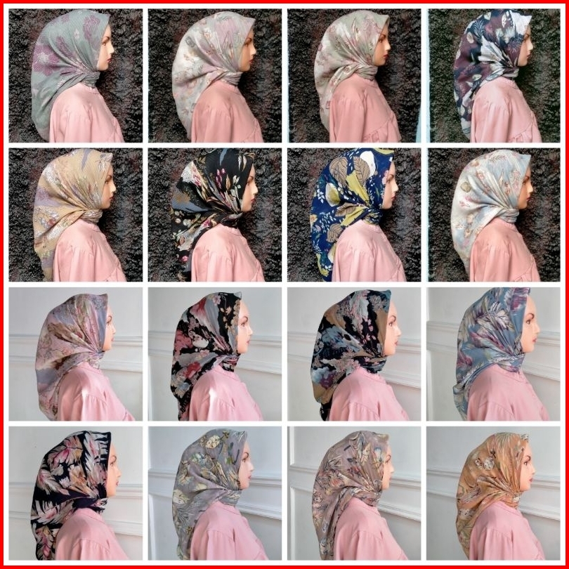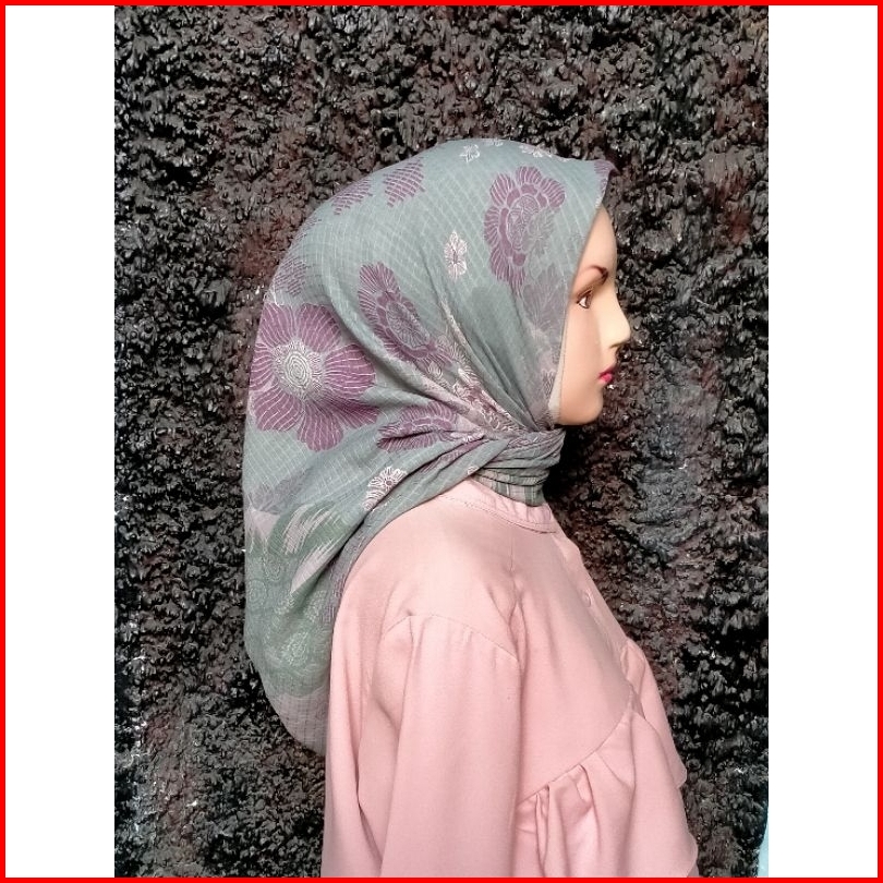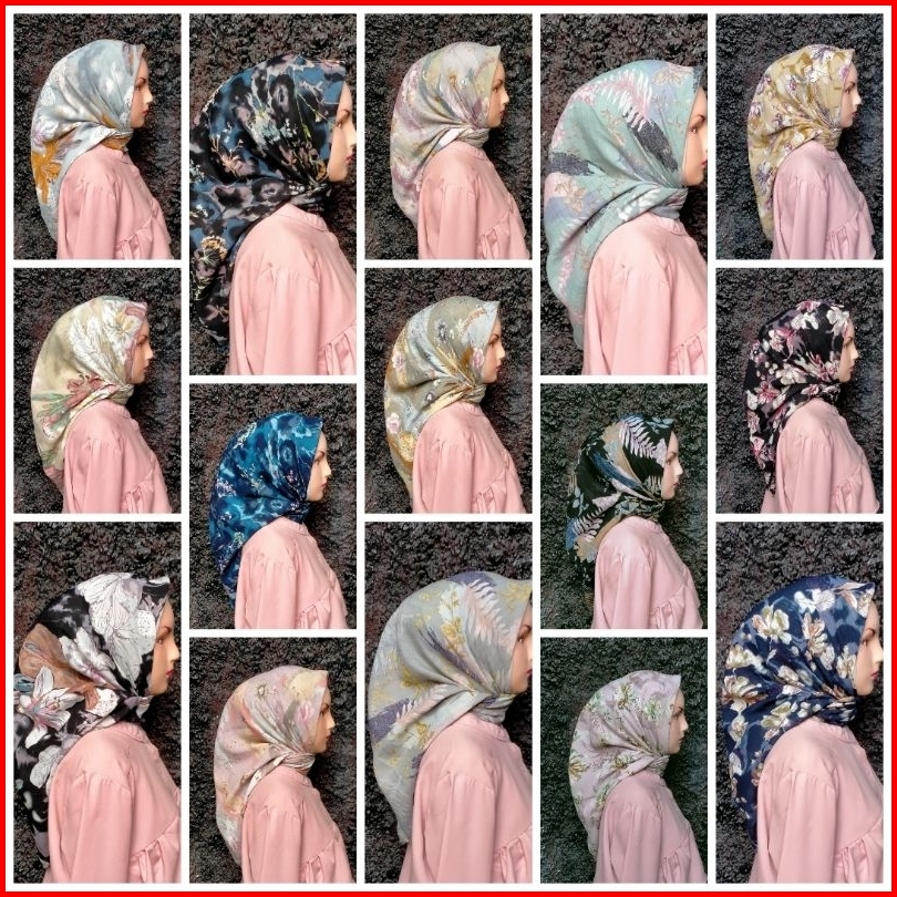 Gedwa Hijab Adoby1 Jahit Tepi Segiempat Motif