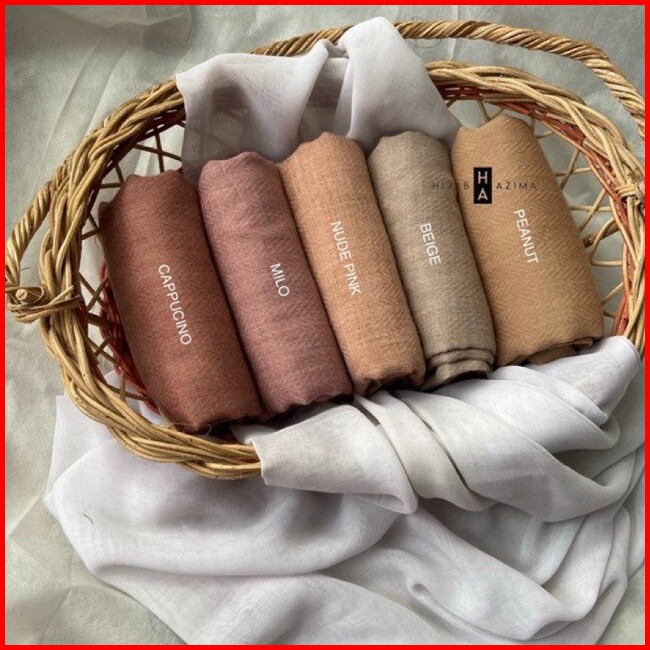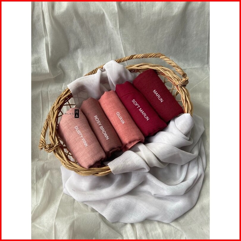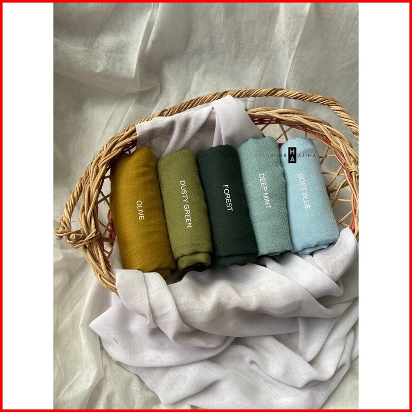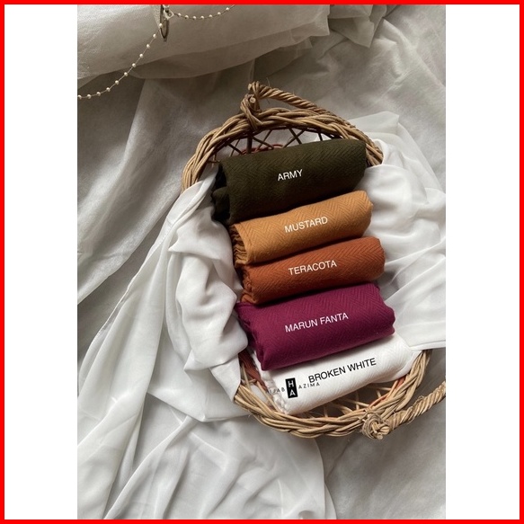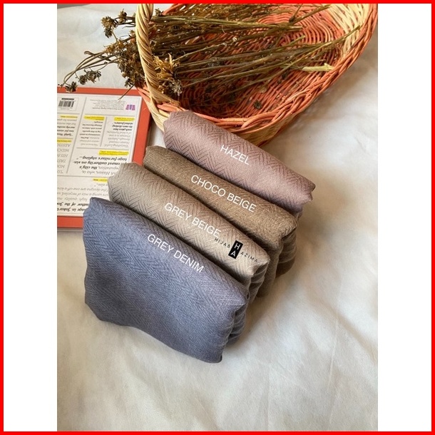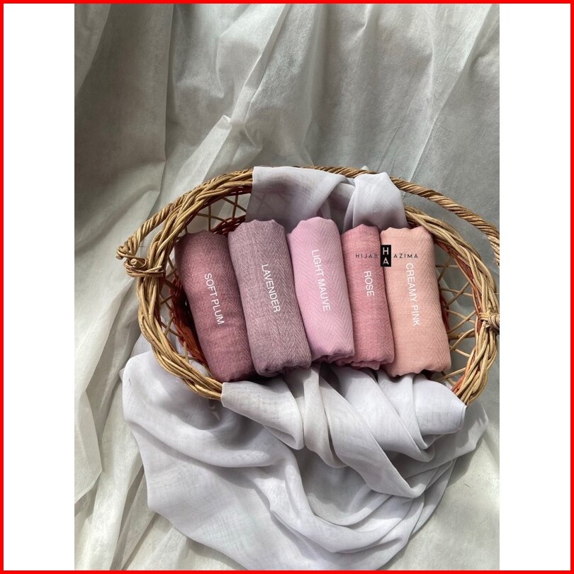 Soft plum, Lavender, Light mauve, Rose, Creamy pink, Rosy brown, Milo, Nude pink, Peanut, Forest, Deep mint, Soft blue, Grey, Denim, Grey denim, Dusty Pink, Marun, Olive, Dusty green, Navy, Choco beige, Guava, Hitam, Soft Marun, Hijau Tua, Mustard, Teracota, Broken white