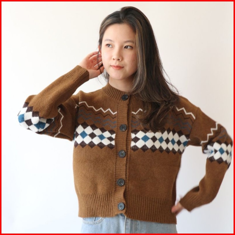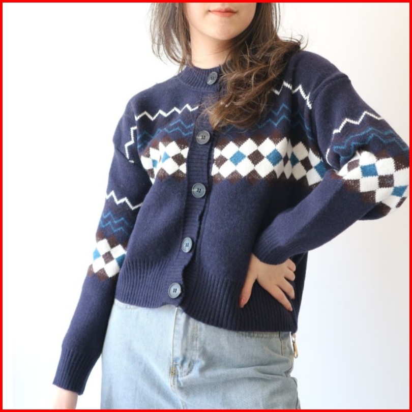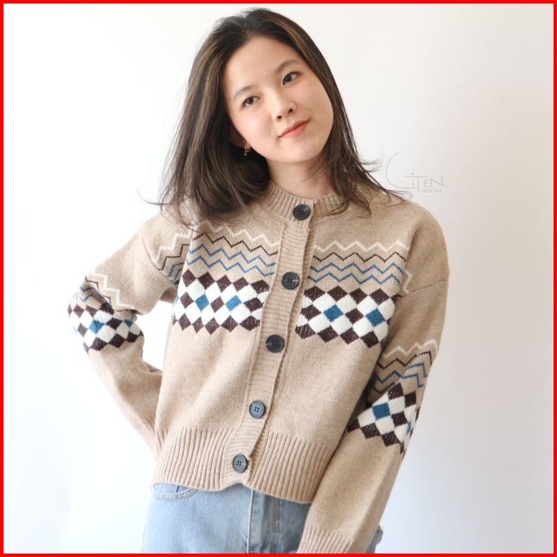 Zigzag Cardi Korean Cardigan Rajut Sweather Korea Sweater Wanita Bahan Rajut Premium