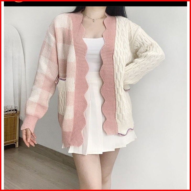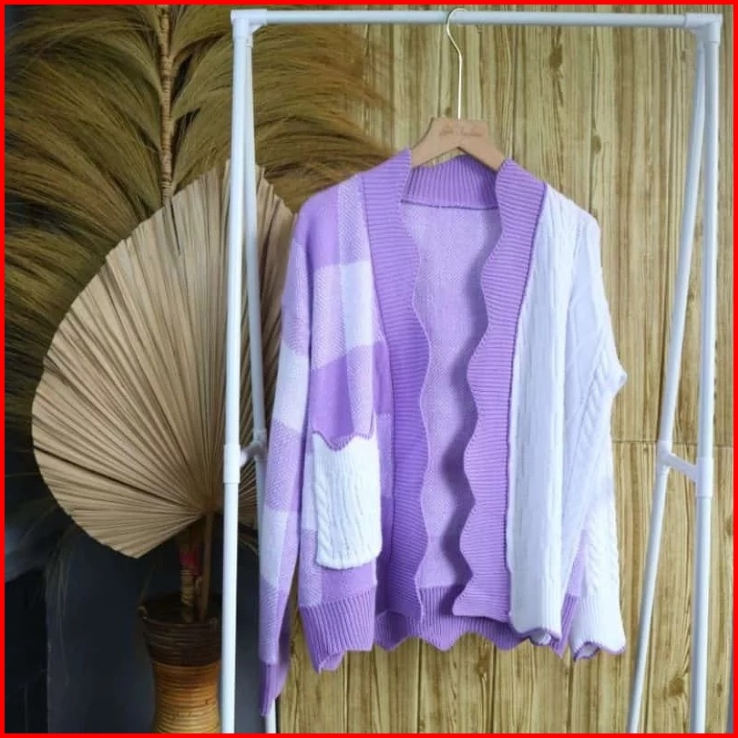 Fluor.inc - Cardigan Rajut Wanita Oversize Premium Cardigan Rajut Wanita Combi Cable Oversize Cardigan Rajut Motif Korea