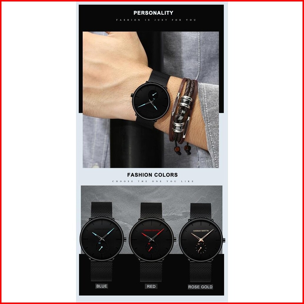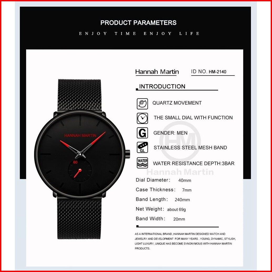 Jam Tangan Pria Hannah Martin Hm100g Mesh Analog Premium Anti Air 30 Meter