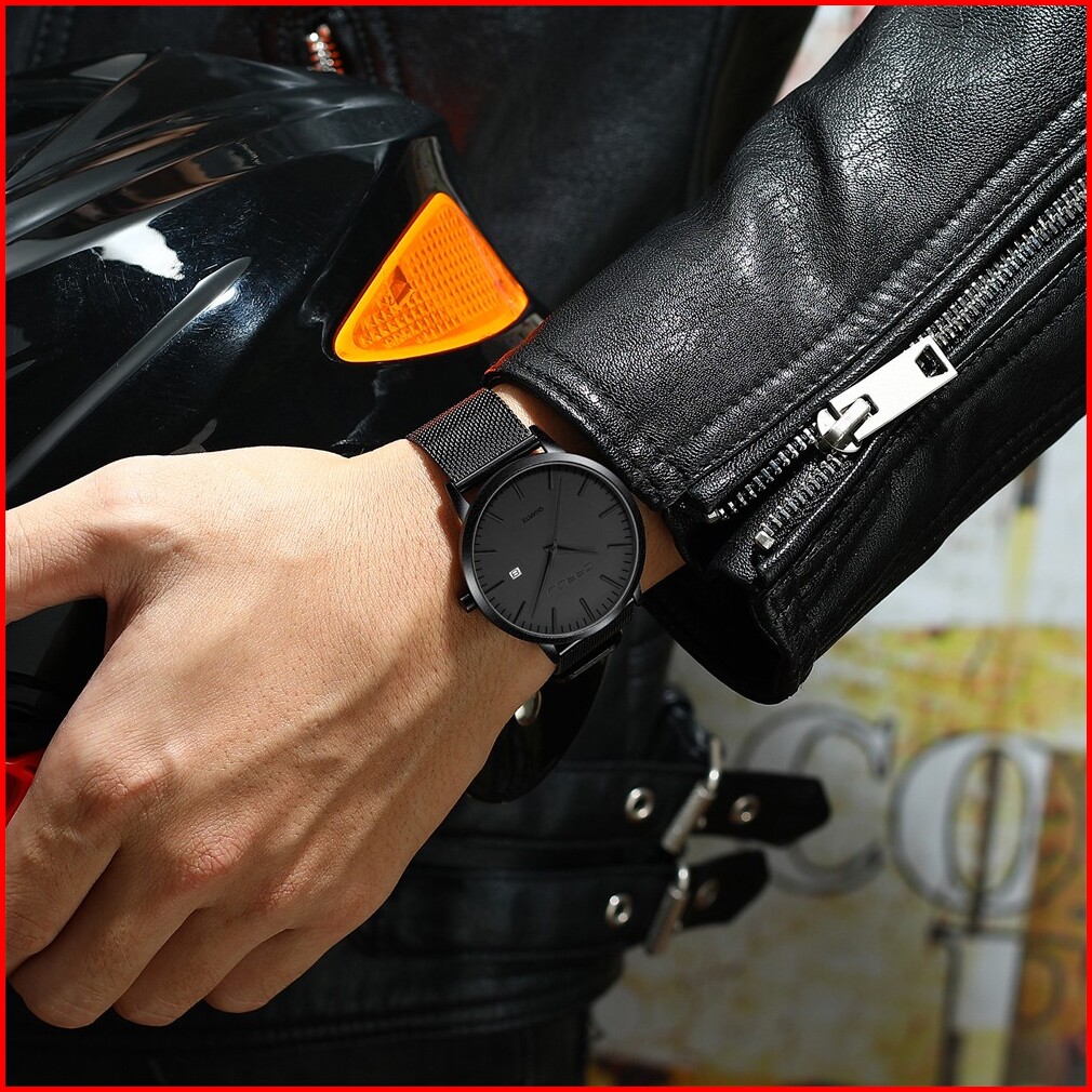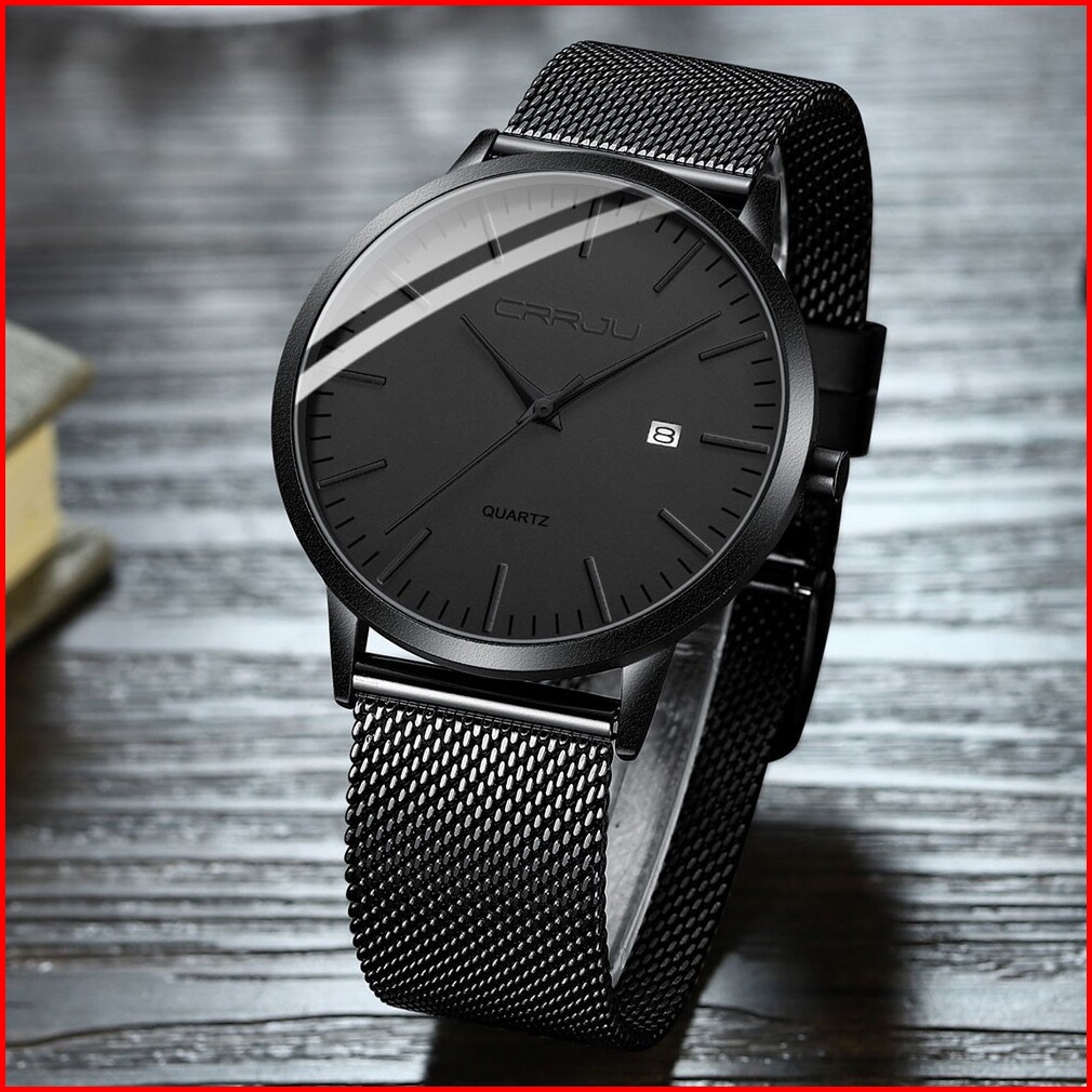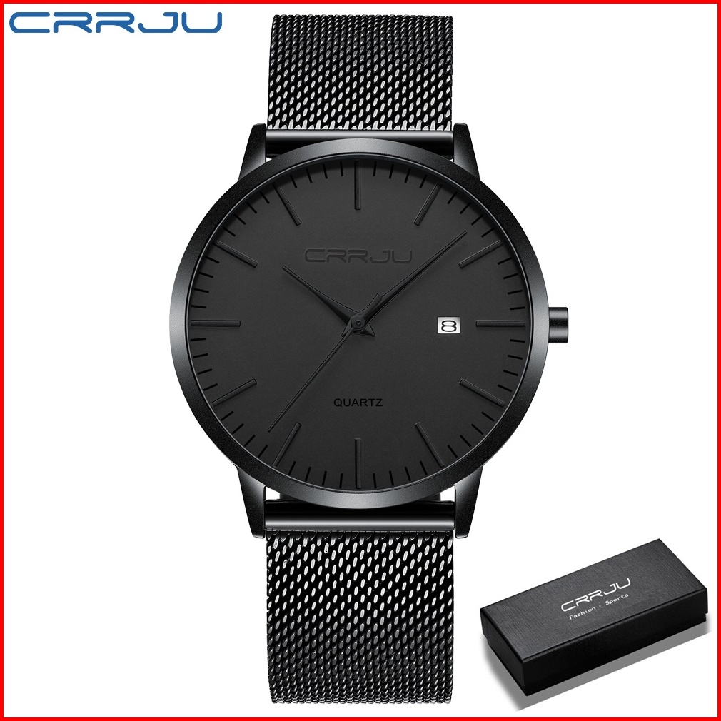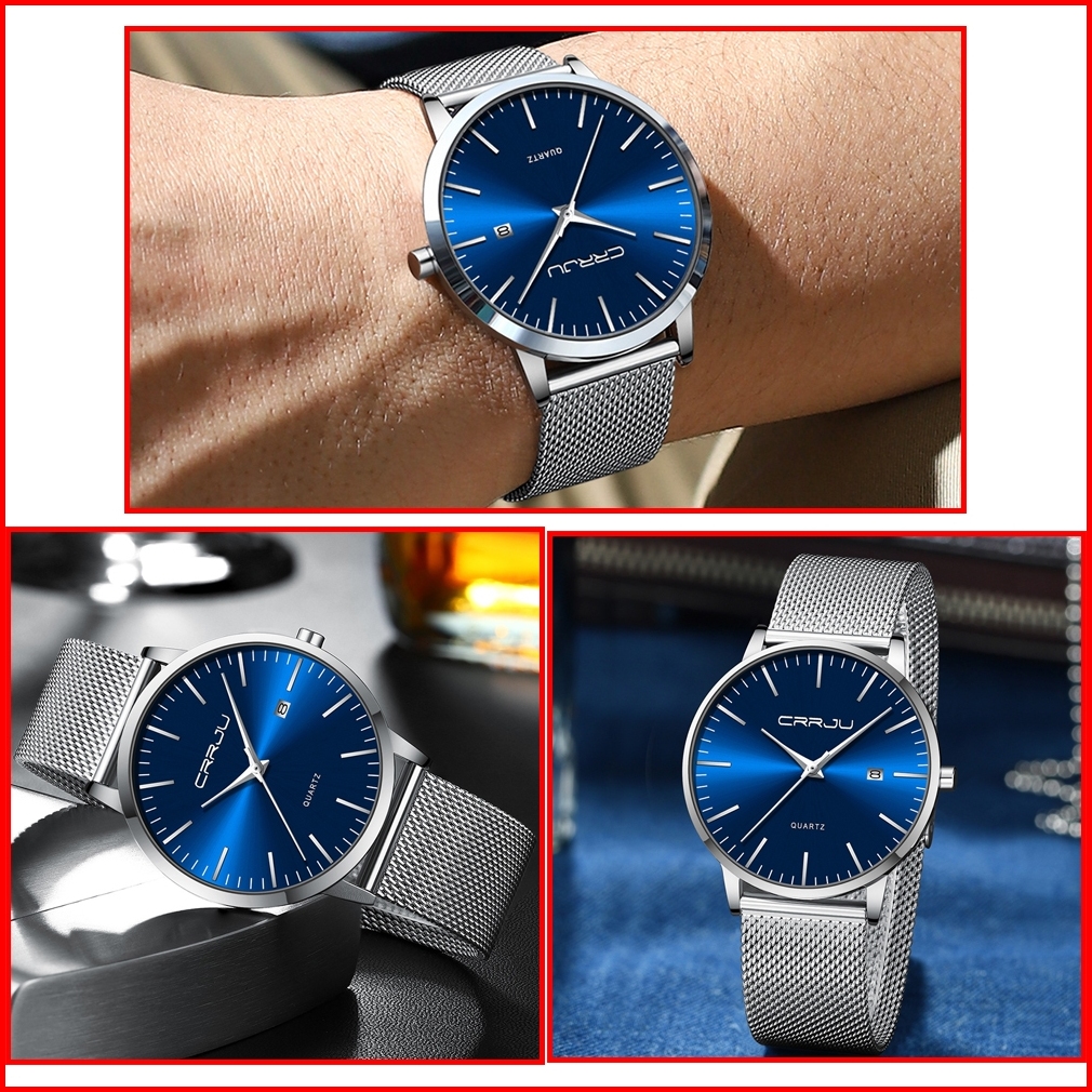 Jam Tangan Pria Crrju Merek Mewah Modis Kuarsa Ultra Tipis Baja Jaring Tali Tahan Air Jam Tangan Cowok