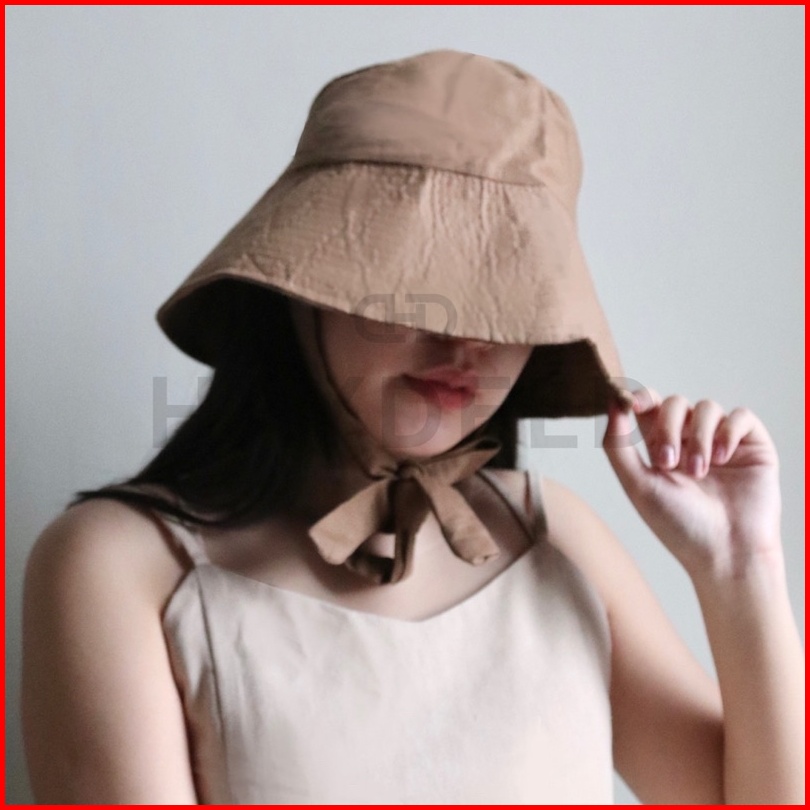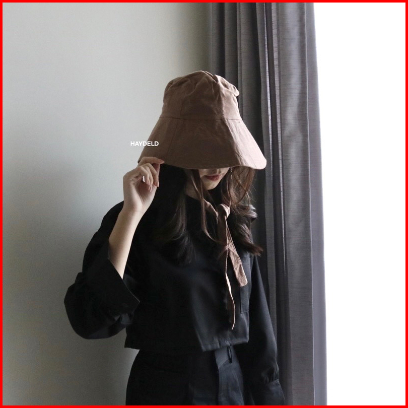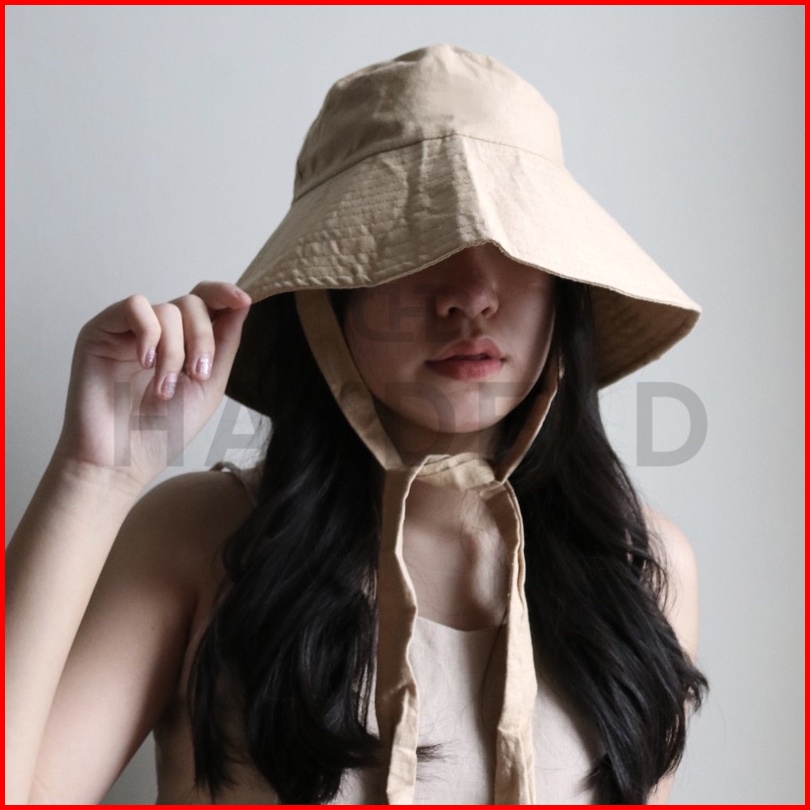 Haydeld - Jane Wide Hat Topi Wide Bucket Hat Lebar Topi Korea Wanita Topi Selebgram Aksen Tali Bucket Peniti Topi Rimba