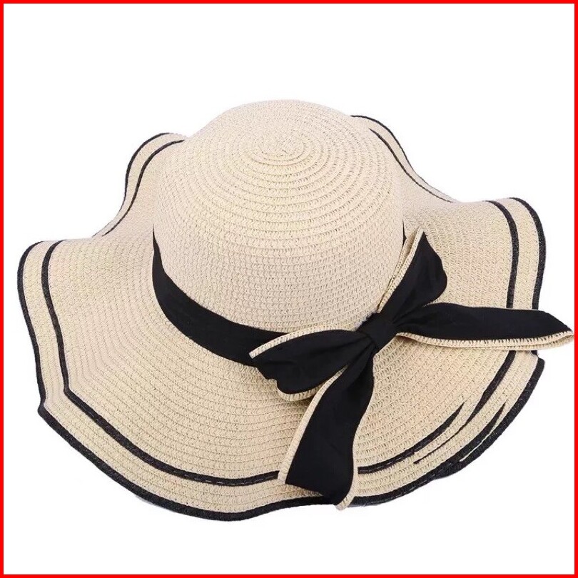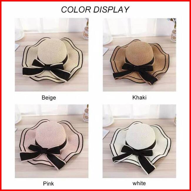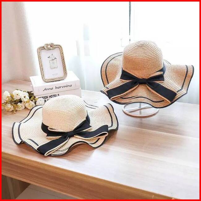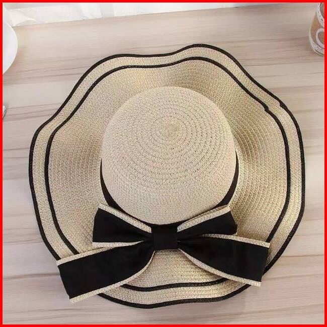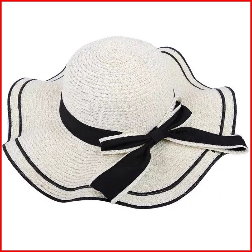 Topi Pantai Anyam Rotan Pita Gelombang 2 Tone