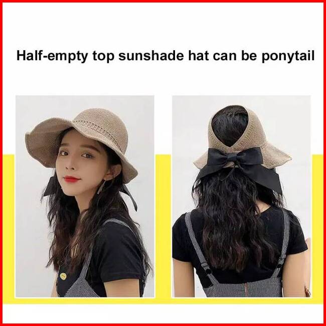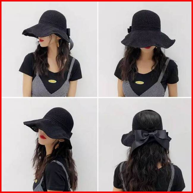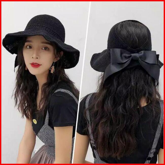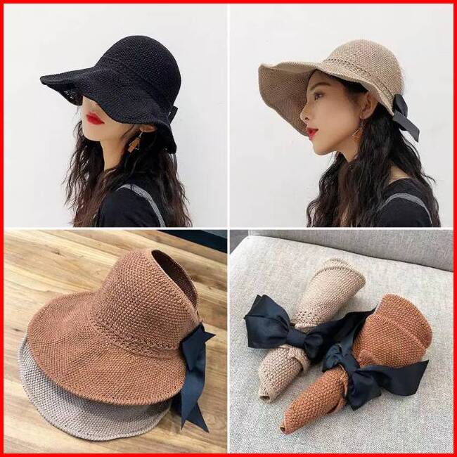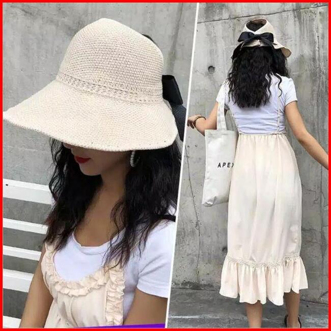 Topi Pantai Butterfly Bow-knot Caddy Katun Linen Lipat