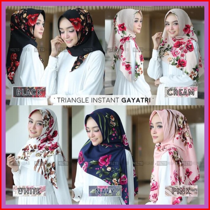 Gayatri Hijab Jilbab Kerudung Triangle Segitiga Motif Bunga Krudung Model Terbaru