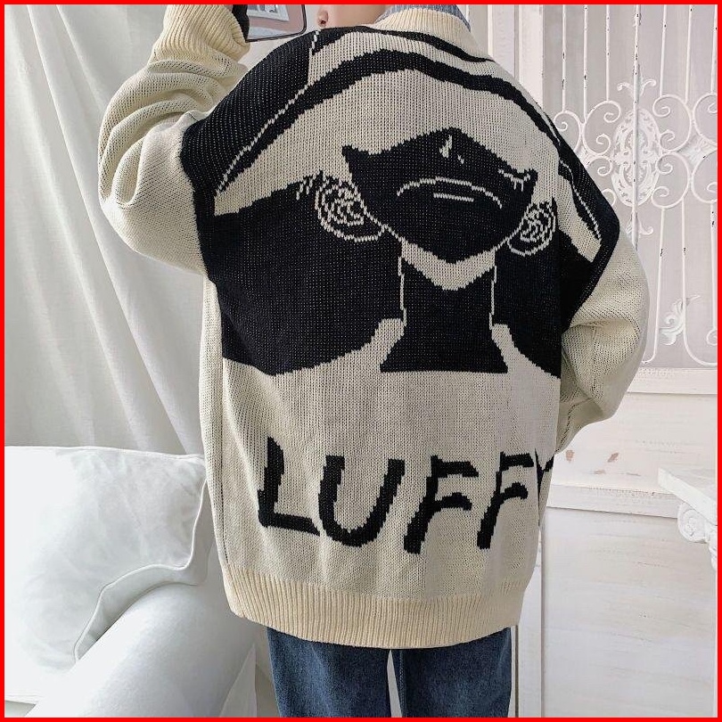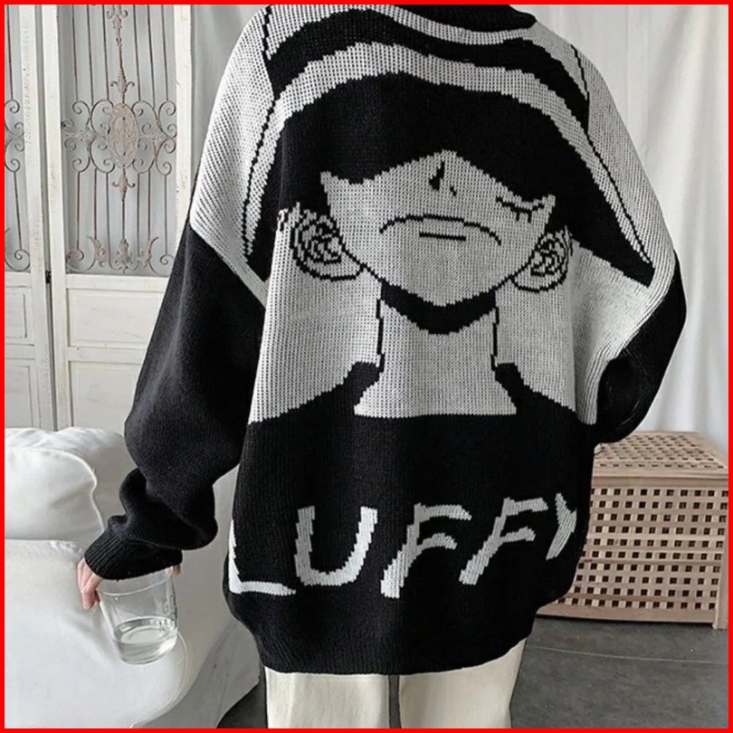 Stiego-moonkey D Luffy Sweater Rajut Streetwear Vintage Style Knitting Sweater Anime Luffy