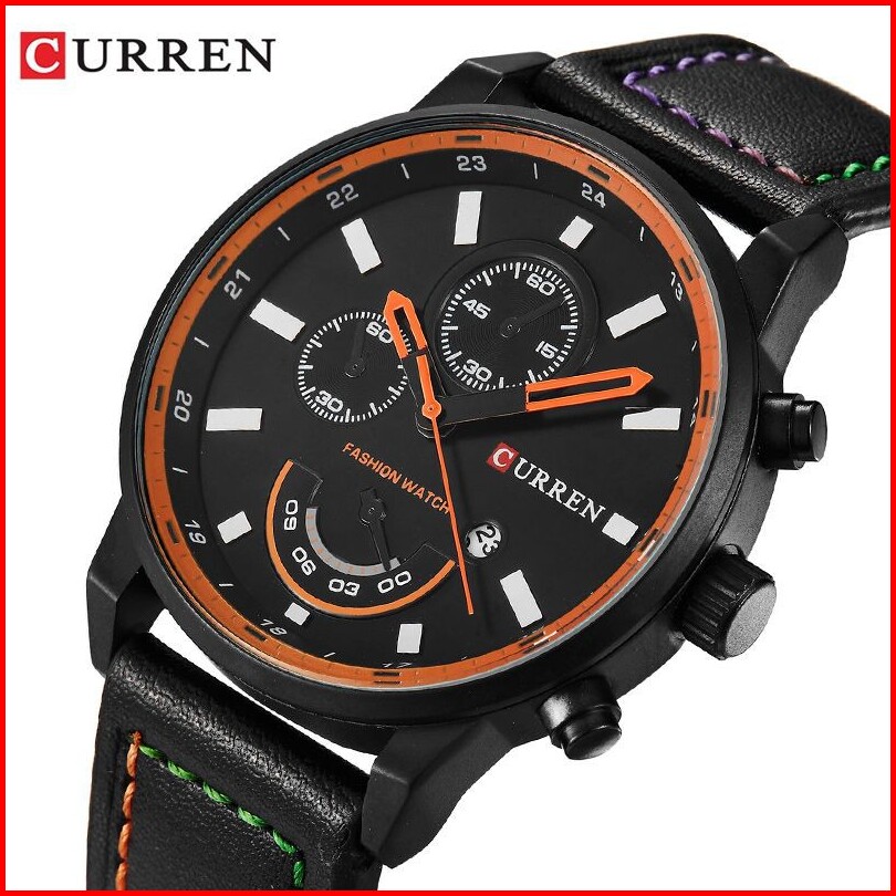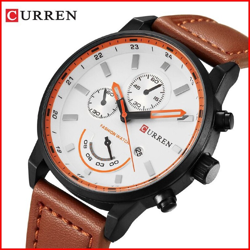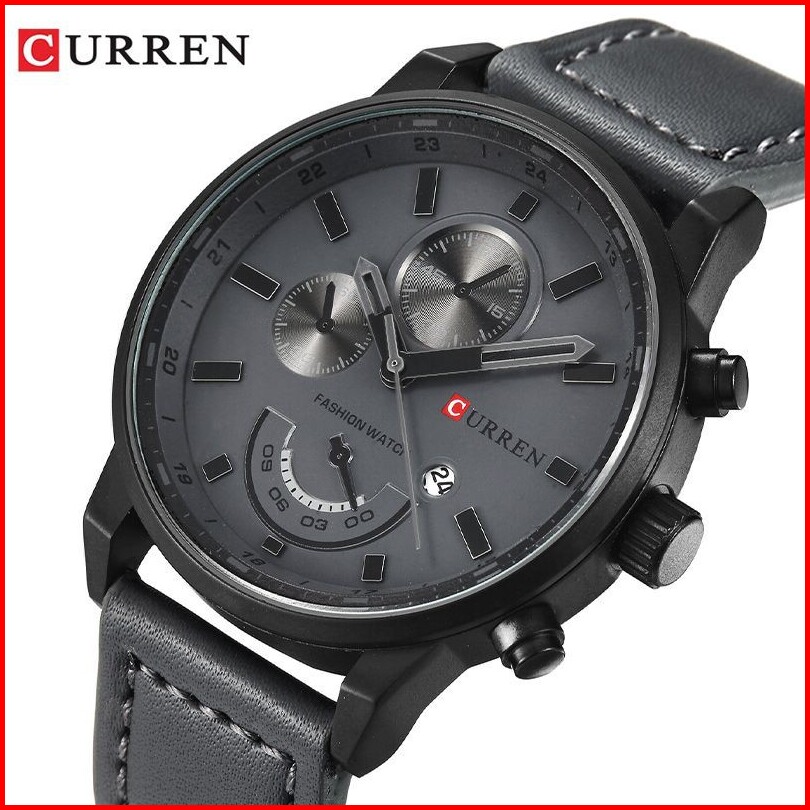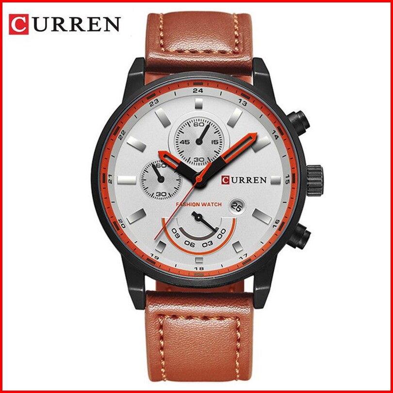 Curren 8217 Jam Tangan Pria Analog Tali Kulit Chronograph Tidak Aktif Currenos