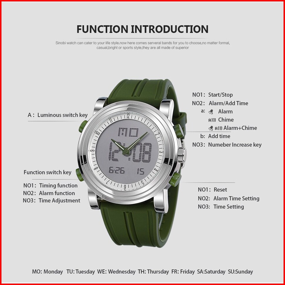 Sinobi 9368 Jam Tangan Pria Analog Digital Tali Silicone Currenos