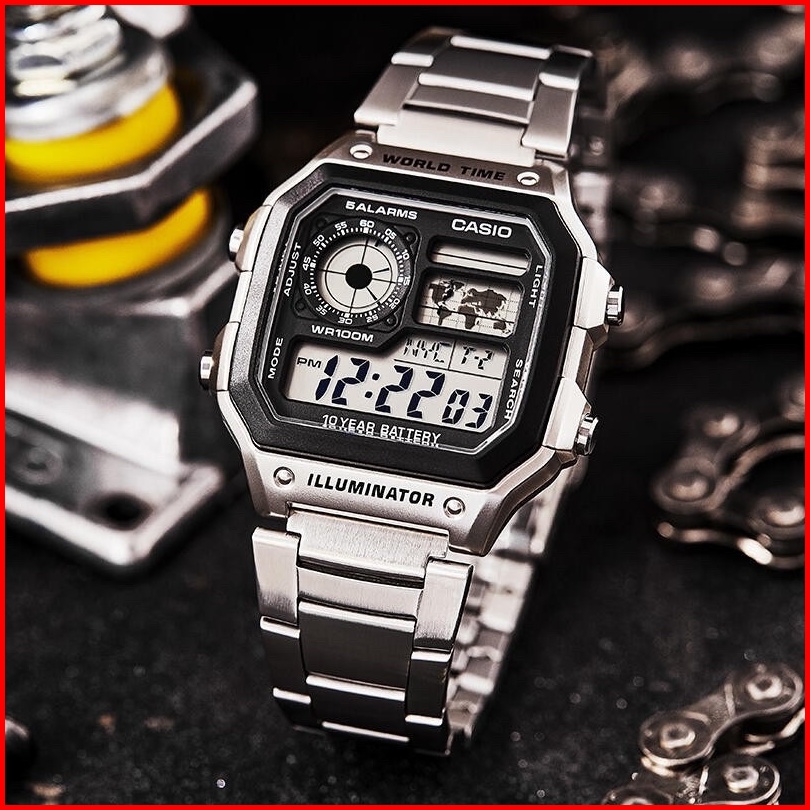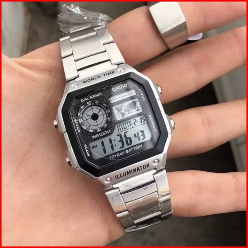 Jam Tangan Pria Casio Ae-1200 Anti Air Stainless Steel