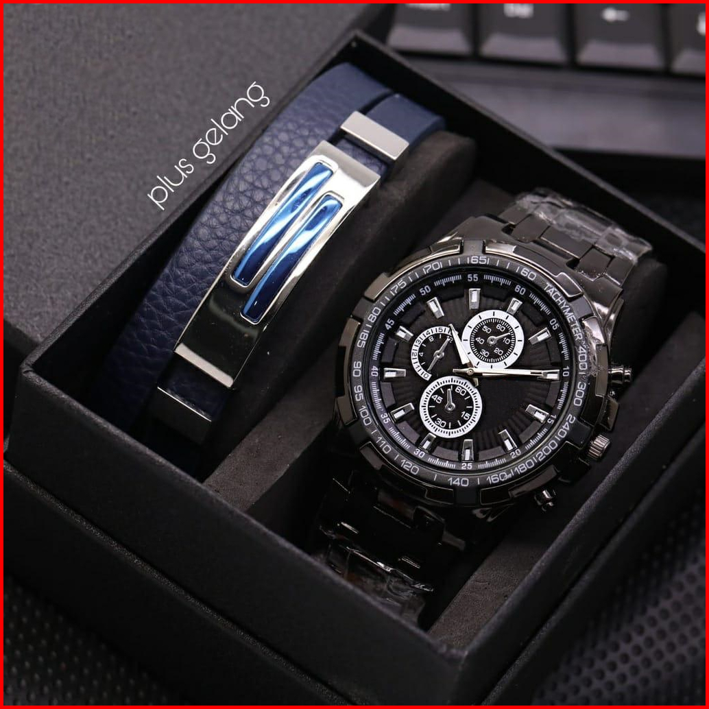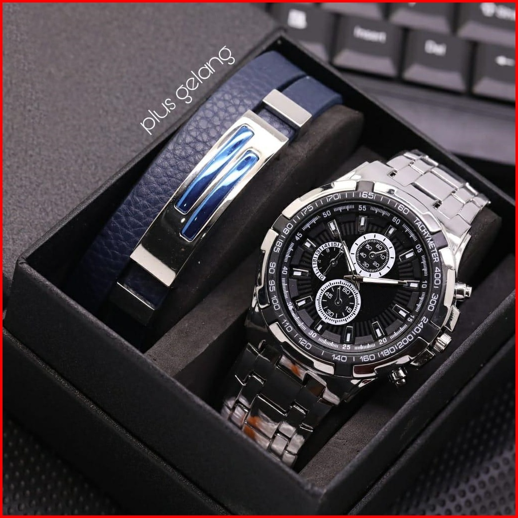 Jam Tangan Pria Cowok Swis Sporty Fashion 7565ls Chrono Variasi Free Gelang Box -