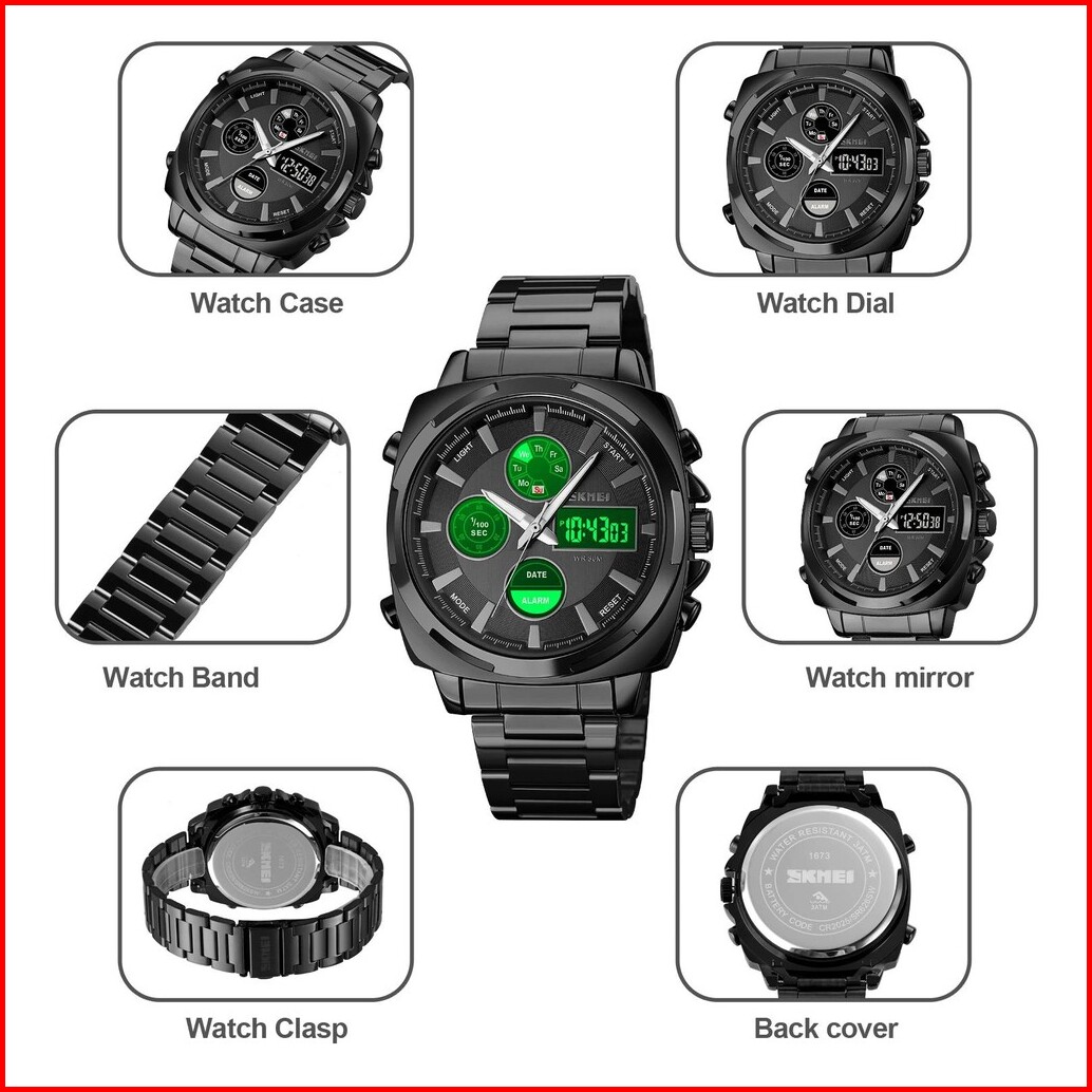 Skmei 1673 Jam Tangan Pria Digital Analog Chronograph Dual Time Anti Air Watchkite Wkos