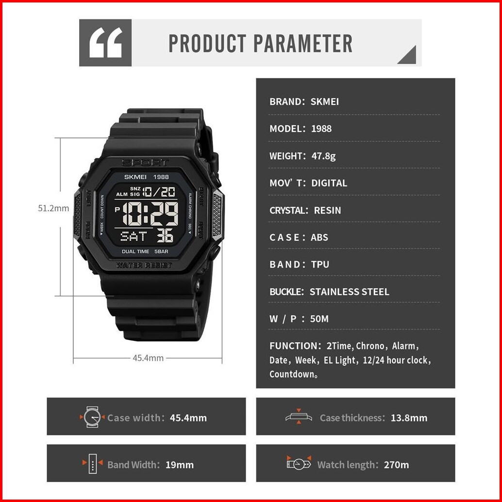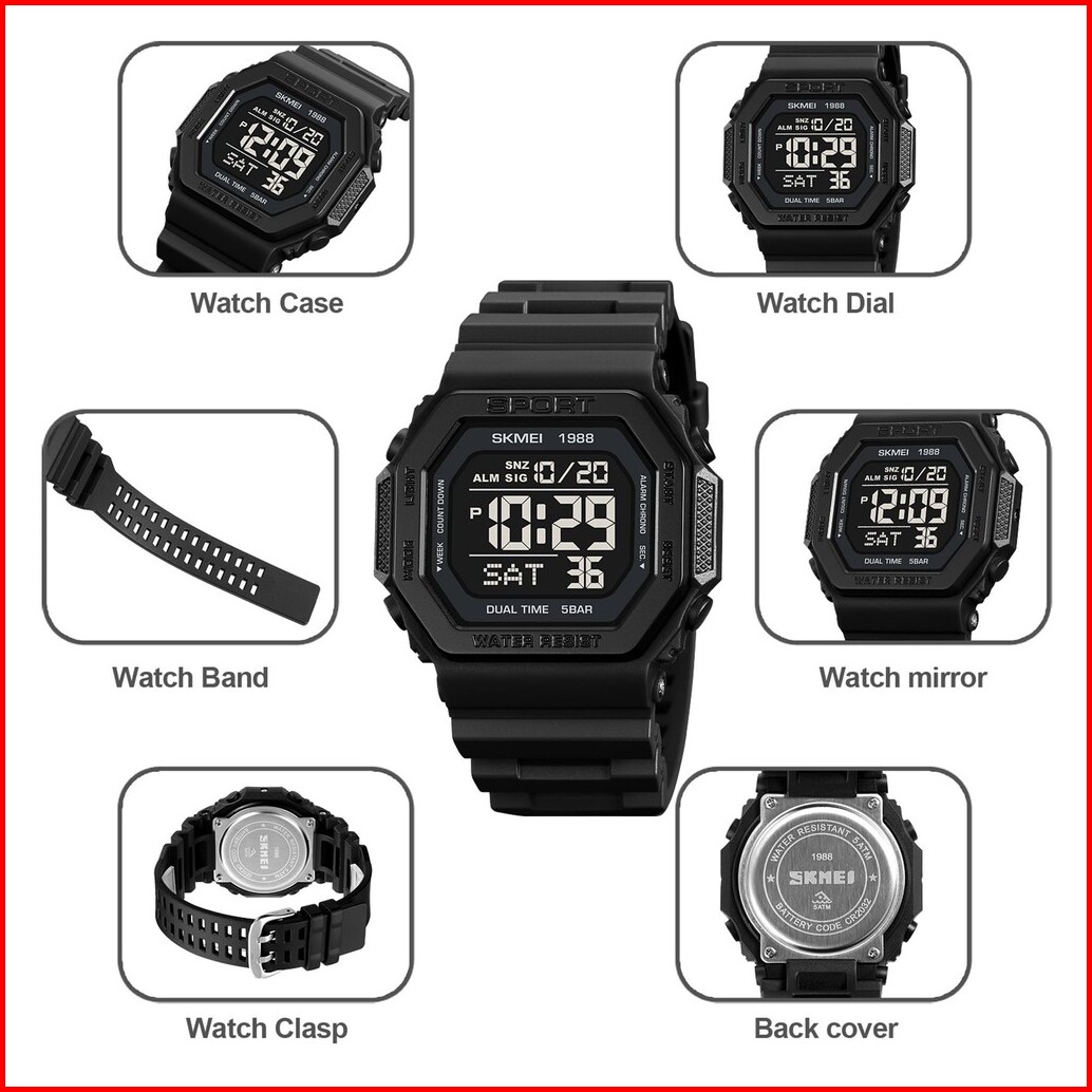 Jam Tangan Pria Skmei 1988 Led Watches Original Waterproof