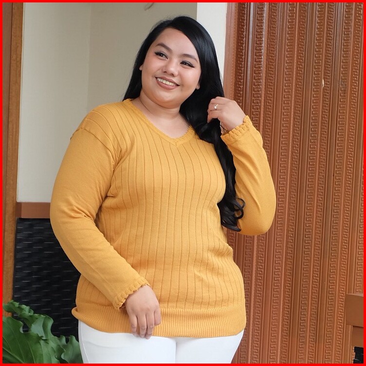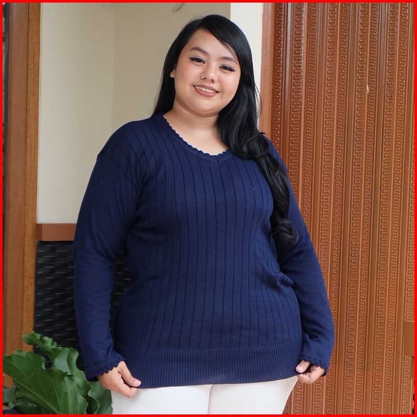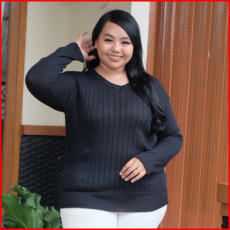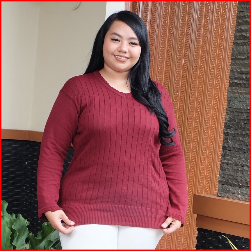 Sweater Jumbo Big Size Rajut Polos Lengan Panjang Wanita Bajubunda