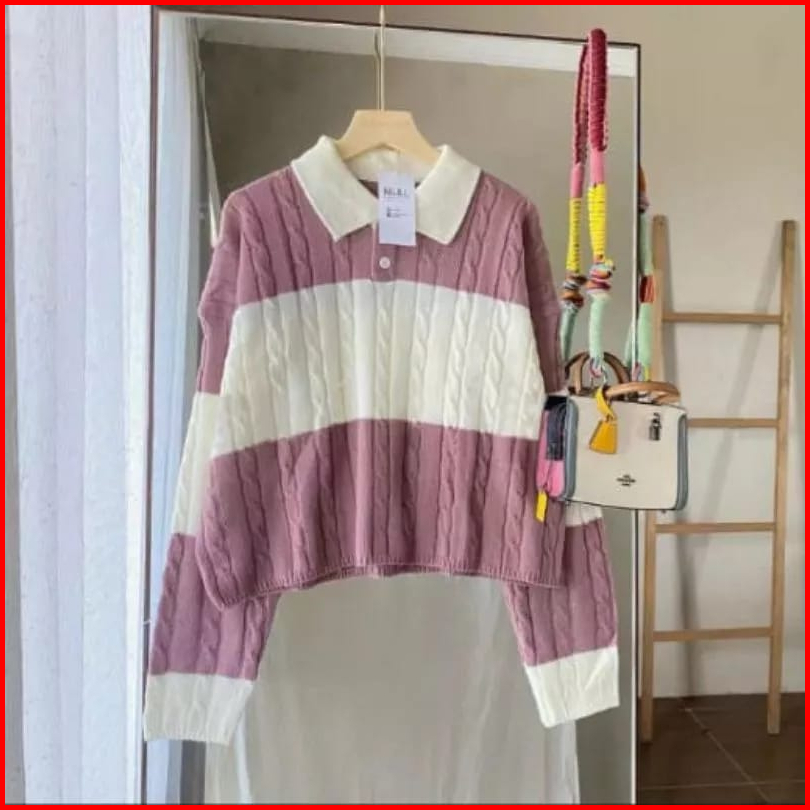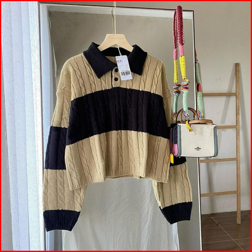 Crop Top Cable Sweater Rajut Dewasa Premium Sweter Cable Crop Top Rajut