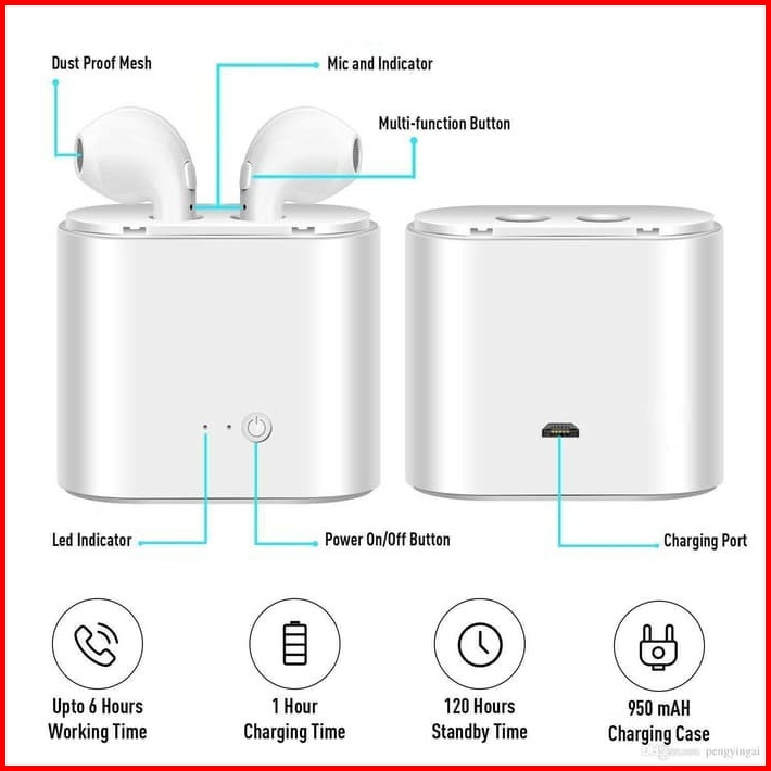 Headset Bluetooth Murah Wireless Earphone Hbq I7s Tws - Putih