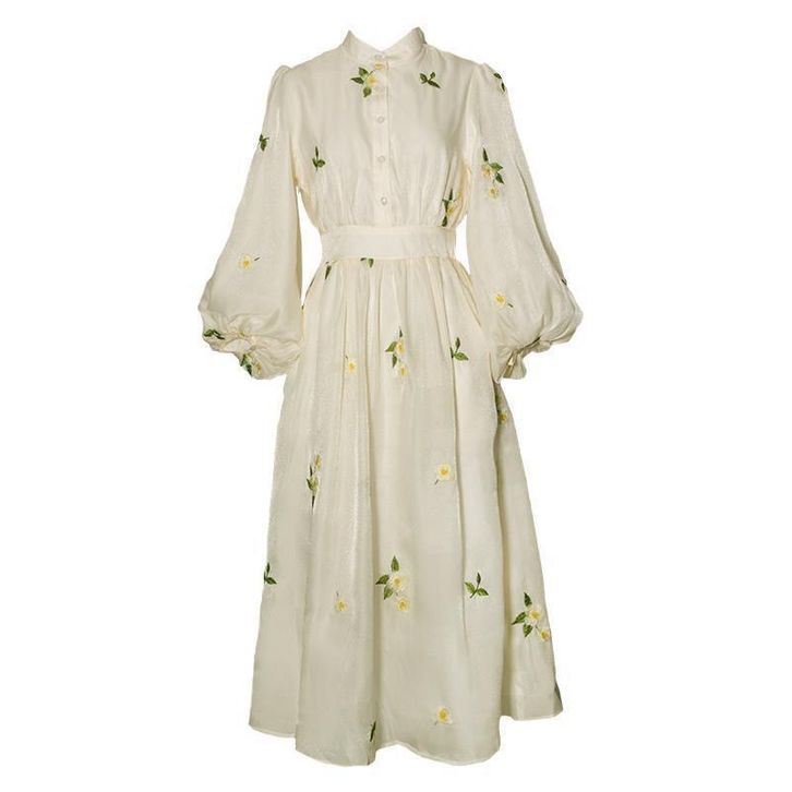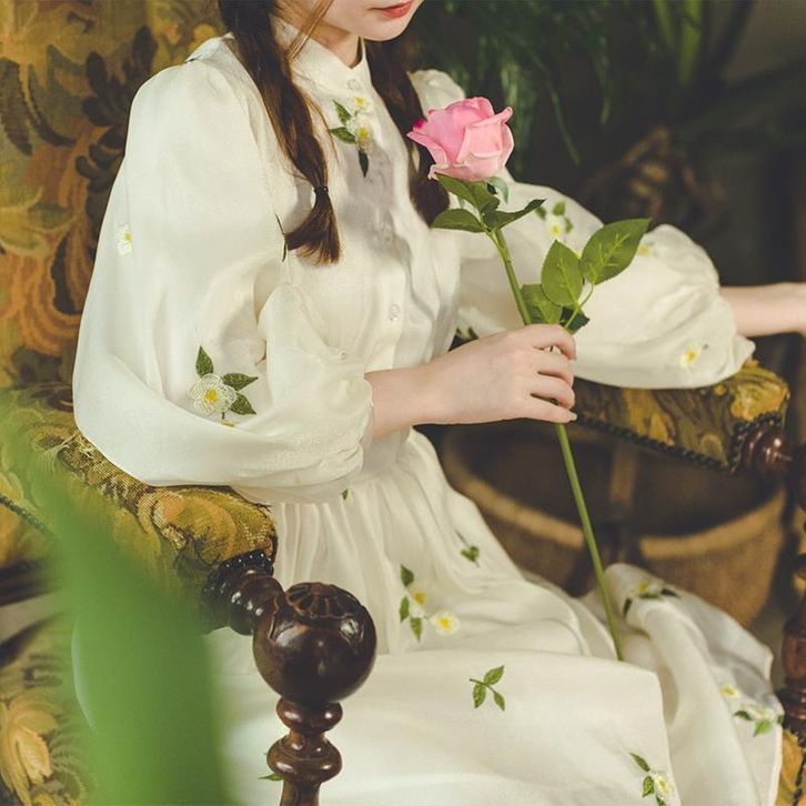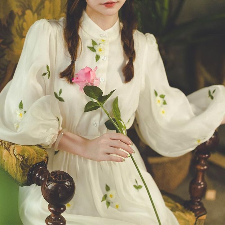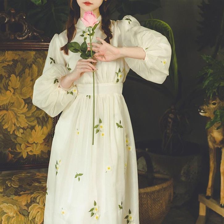 Chesa Dress Floral Korean Classy Vintage Summer Spring Flower Beach Sweet Street Hijab Long White Lilac Ready Stock