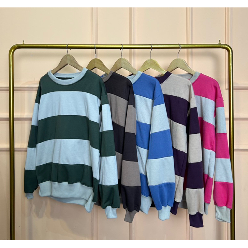 SWEATER STRIP OVERSIZE CROOPE SWEATER TWOCOLOUR STRIP WANITA