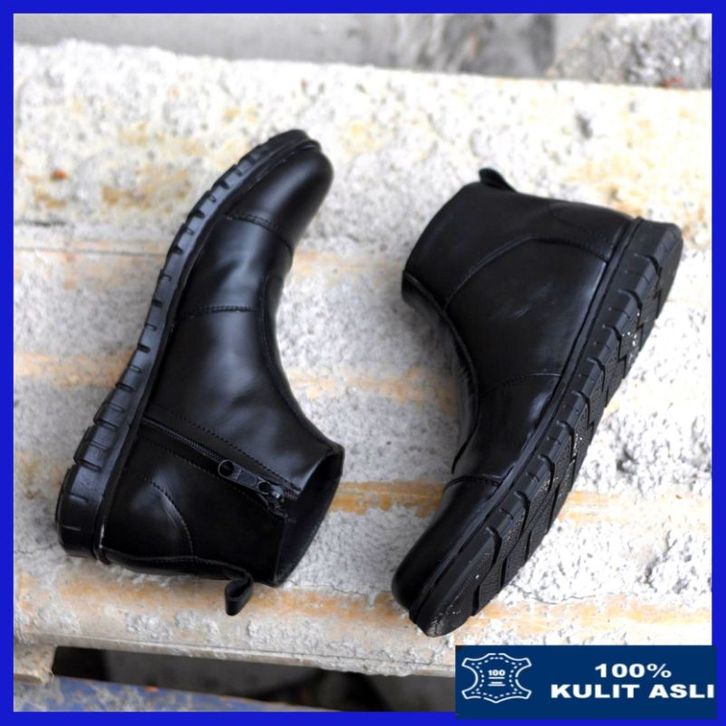 TERBARU WARKA CORRA-Sepatu Boots Pria Kulit Asli Original Keren Berkualitas Terbaik Model Resleting STG