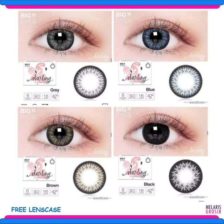 BUNDLE HEMAT PEMULA SOFTLENS X2 DARLING EXOTICON (BIG EYES) 16mm SOFLENS LENSA KONTAK FREE LENSCASE READY NORMAL MINUS