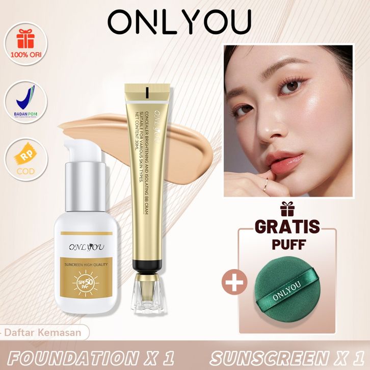 【BPOM】ONLYOU Concealer Waterproof Foundation & onlyou Sunscreen SPF50+ Sunscreen Face & Body sunblock make up sepaket