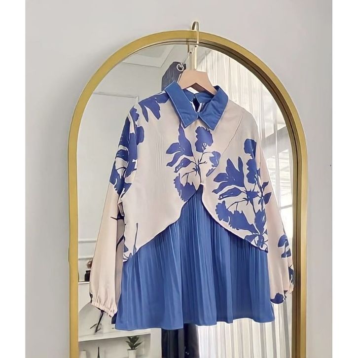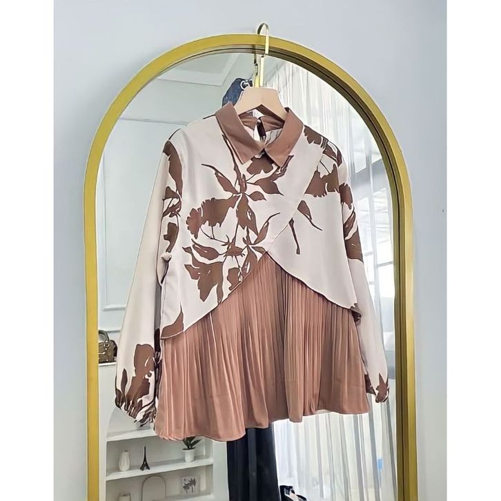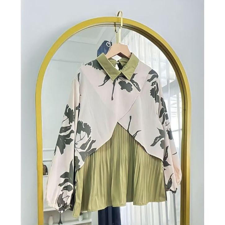 BAJU WANITA PROMO MUNNA BLOUSE PLISKET KOMBINASI KEKINIAN KOREAN SYLE TERMURAH TERLARIS OOTD