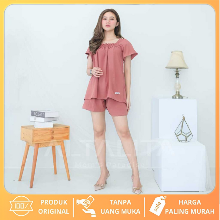 One Set Arunika Setelan Wanita Hotpans Crinkle Airflow Premium Baju Tidur Wanita Dewasa Lengan Pendek Kekinian
