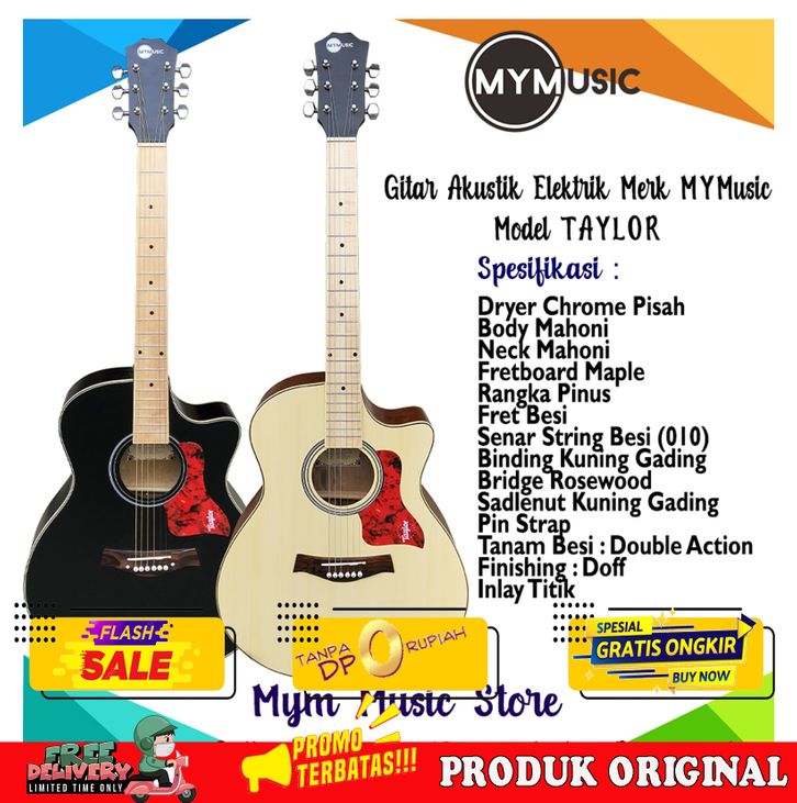 BARU+ GITAR AKUSTIK ELEKTRIK MERK MYMUSIC MODEL TAYLOR BERGARANSI