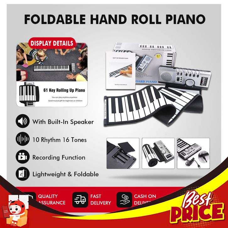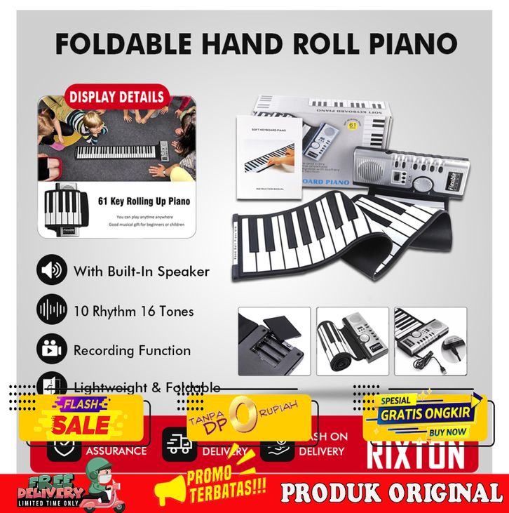 BARU+ RIXTON 61 KEYS HAND ROLLED PIANO WITH HORN ORGAN ELEKTRONIK LIPAT SILIKON PORTABEL UNTUK ANAK-ANAK PEMULA