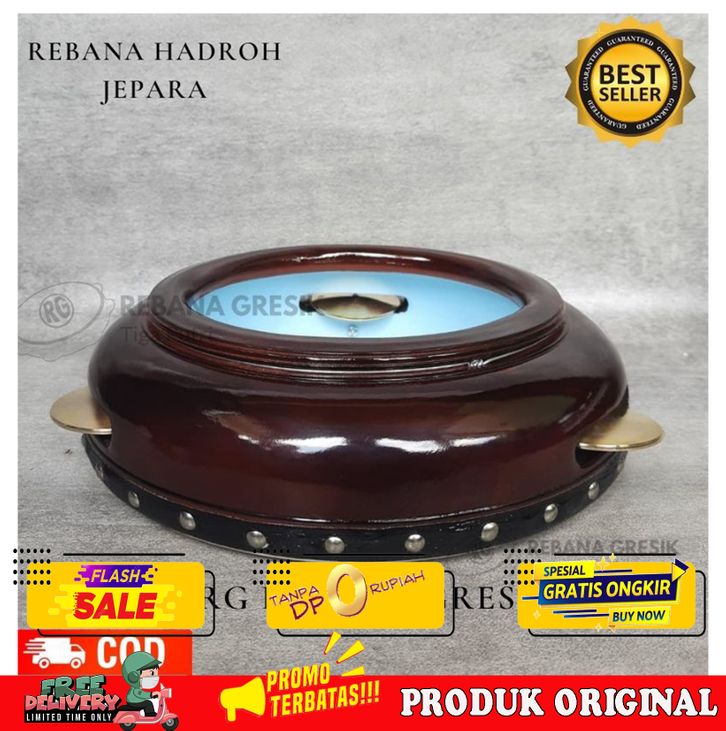 BARU+ REBANA HADROH MODEL JEPARA KAYU MANGGA UKURAN 30 KENCER KUNINGAN