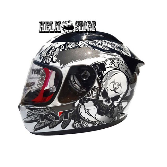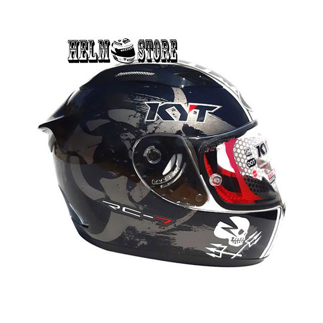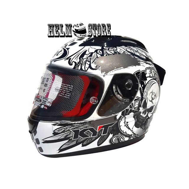 HELM KYT RC 7 MOTIF #13 BLACK WHITE GM ORIGINAL KACA FLAT CLEAR KYT RC SEVEN FULL FACE SNI DOT