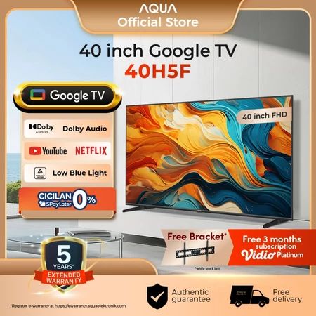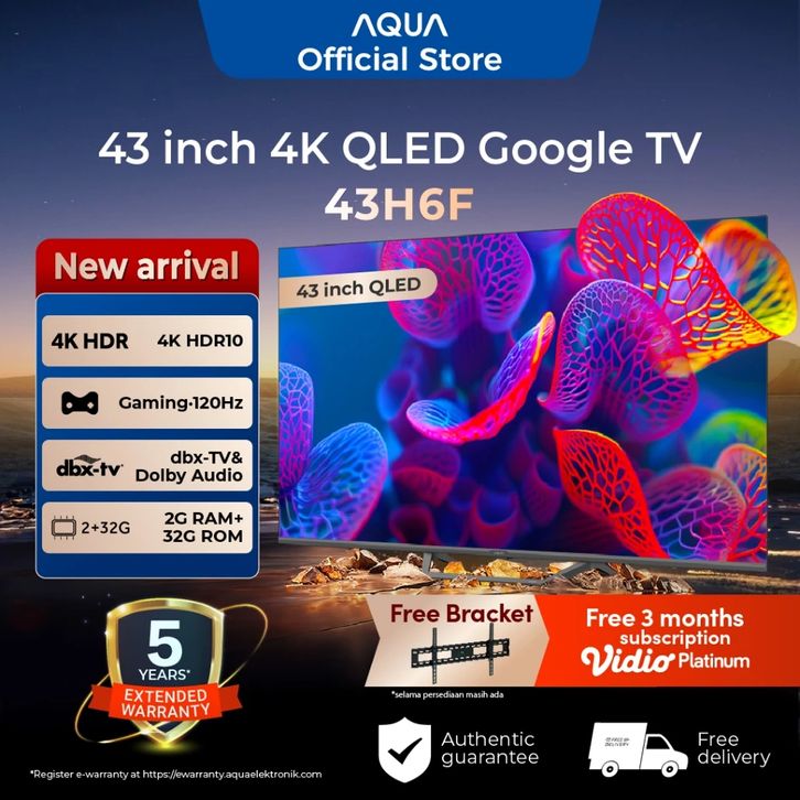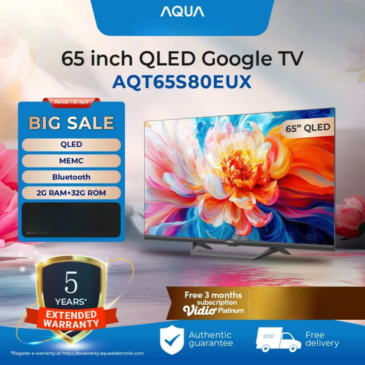 GOOGLE TV AQUA 65 55 43 40 INCH AQT65S80EUX QLED 4K HDR RAM 2GB 32GB DIGITAL AI SMART TELEVISI BESAR ELEKTRONIK MURAH