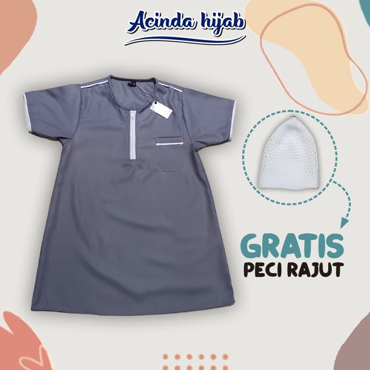 Jubah Anak Arab Laki-laki Set Peci Rajut Qomis Koko Gamis Premium 0-2 Thn